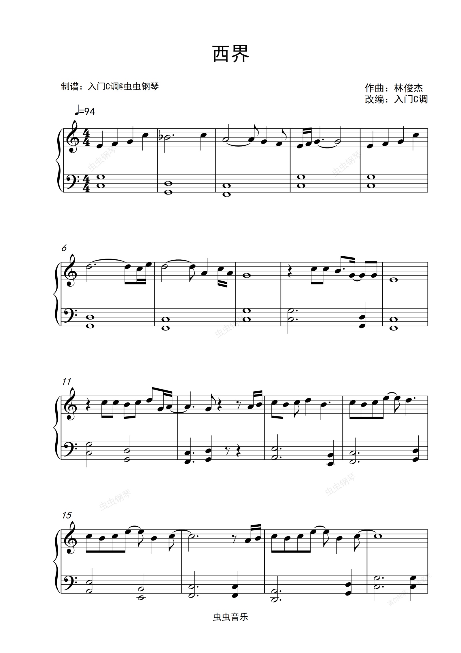 钢琴谱:【90后记忆】林俊杰《西界》入门C调简单版
