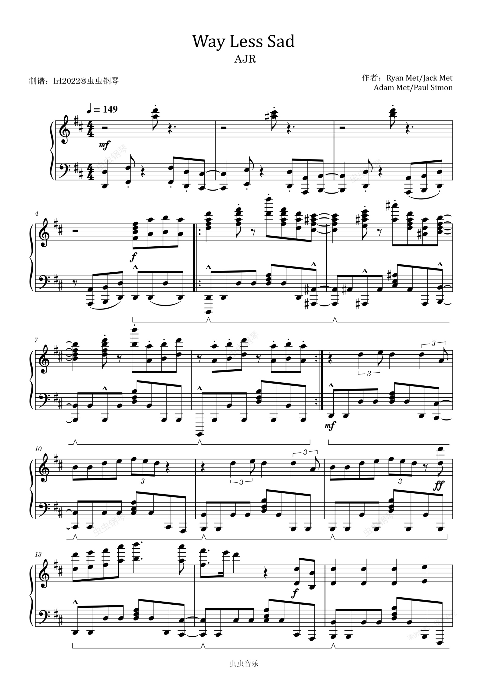 钢琴谱:Way Less Sad - AJR - 钢琴独奏