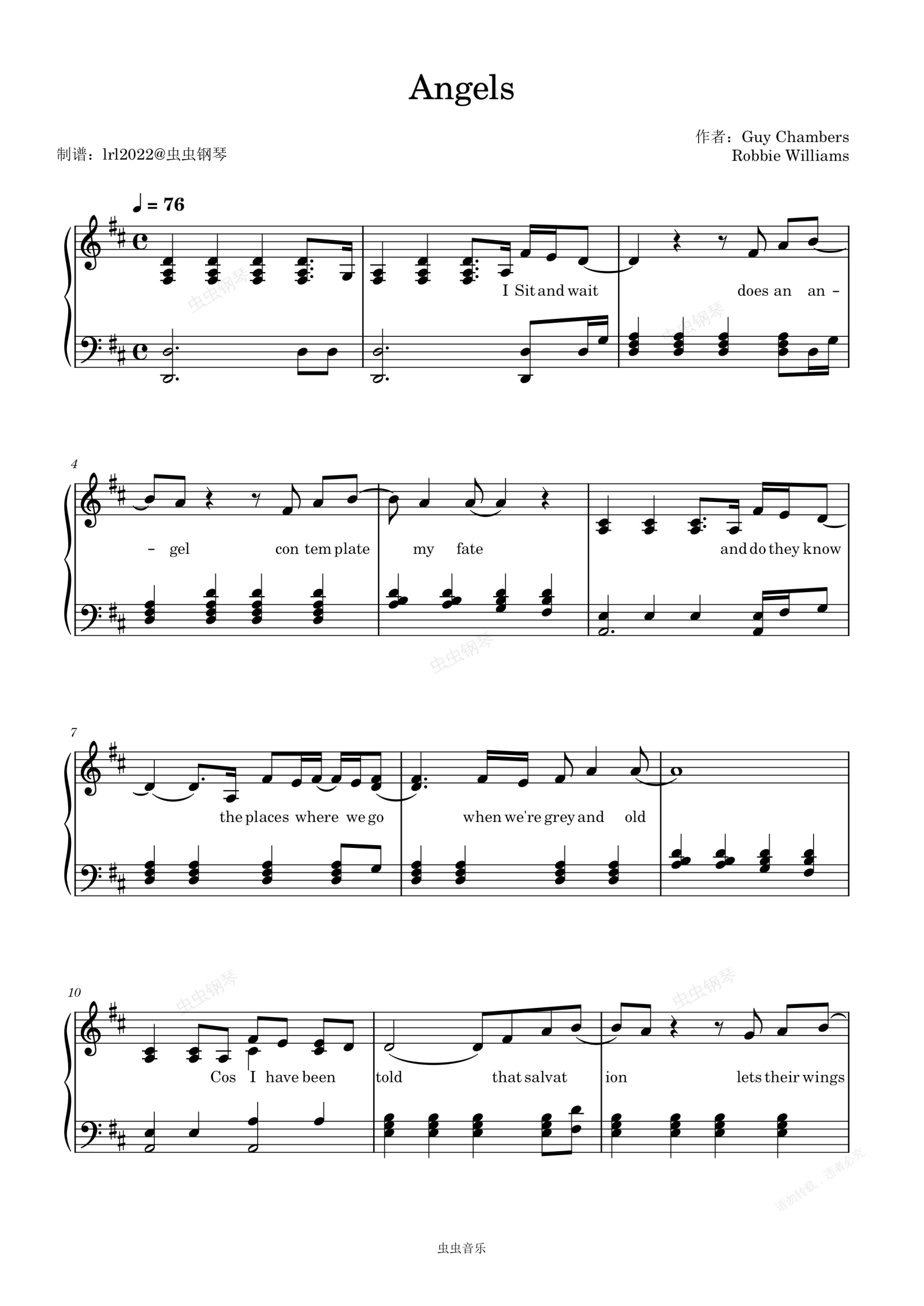 钢琴谱:Angels - Robbie Williams - 钢琴独奏加歌词