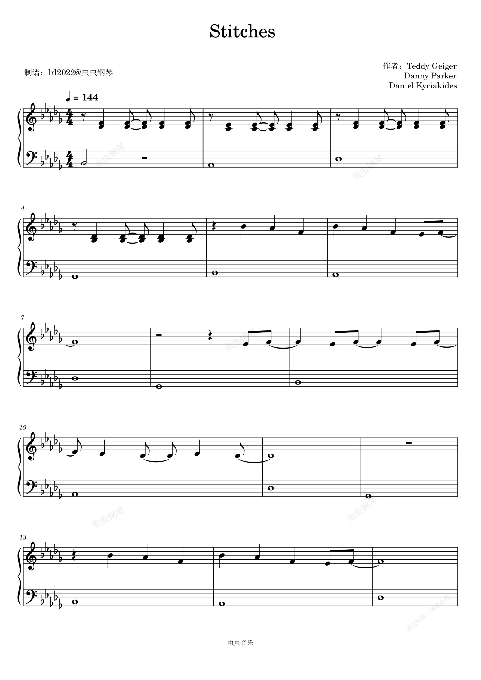 钢琴谱:Stitches - Shawn Mendes - 完整版 - 钢琴独奏