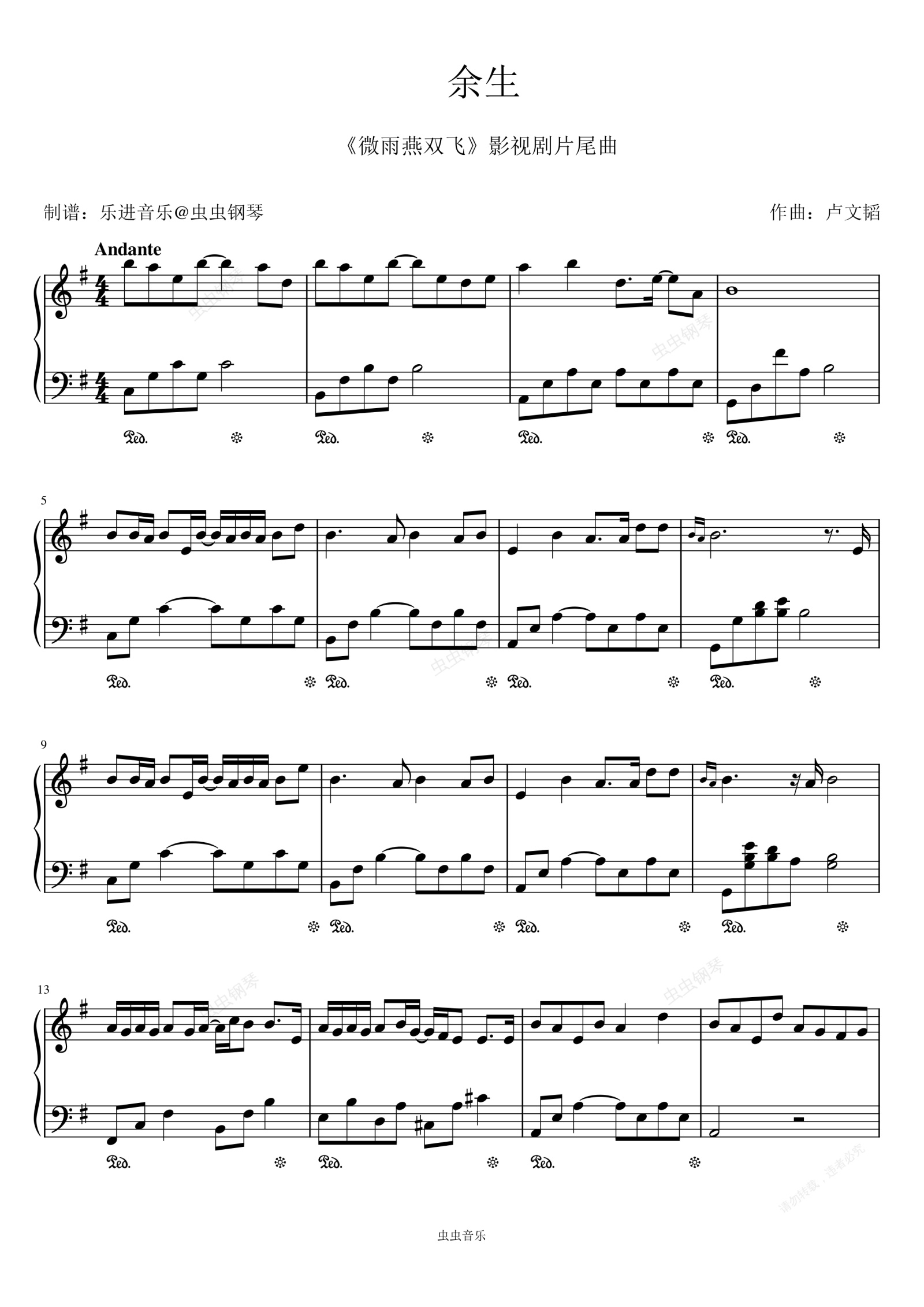 钢琴谱:《余生》影视 剧微雨燕双飞 片尾曲