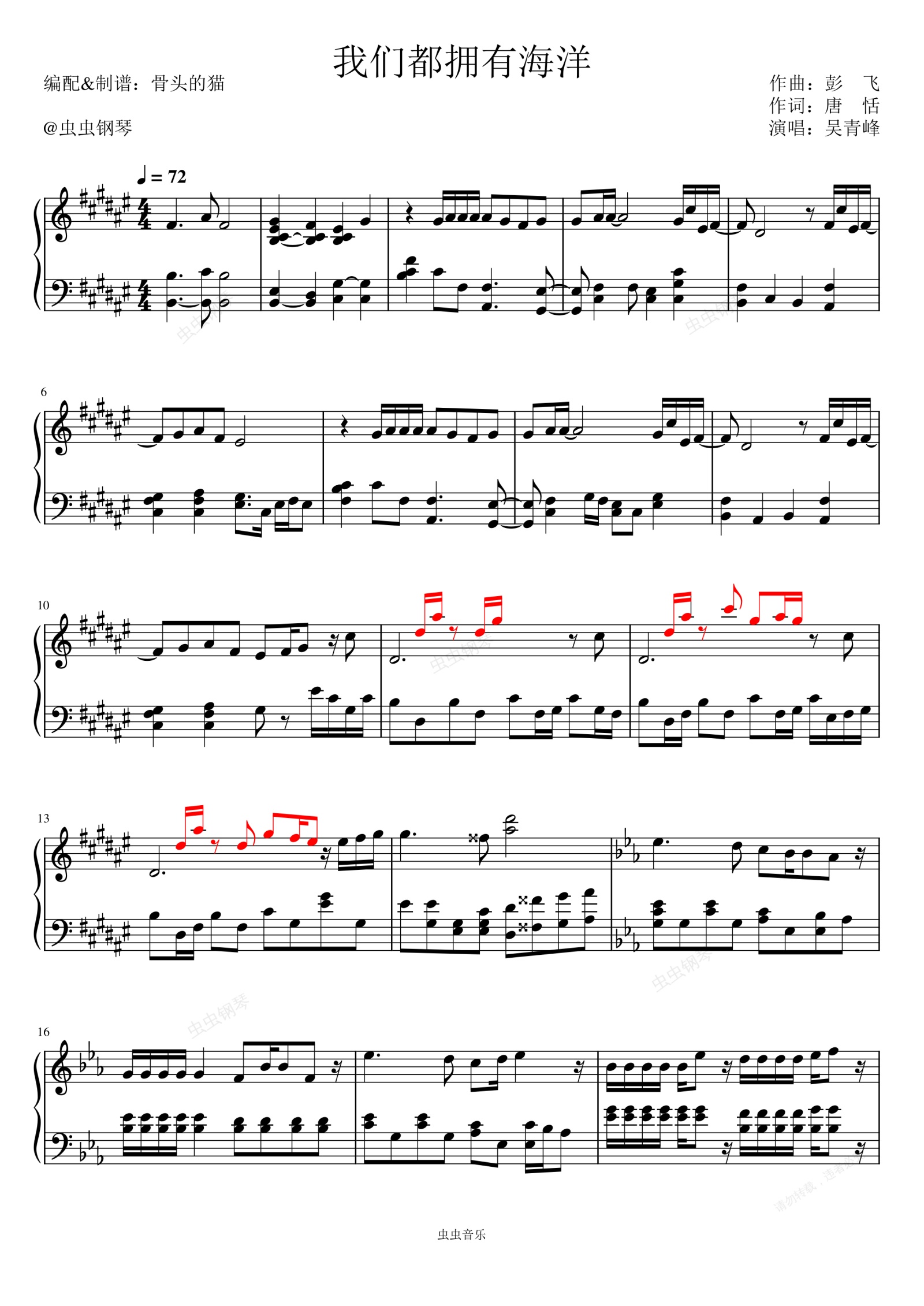 钢琴谱:我们都拥有海洋-吴青峰