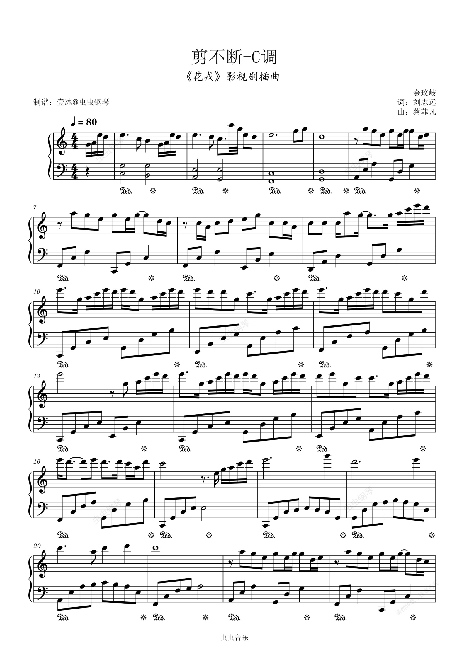 钢琴谱:【影视插曲】剪不断//《花戎》影视剧插曲-C调