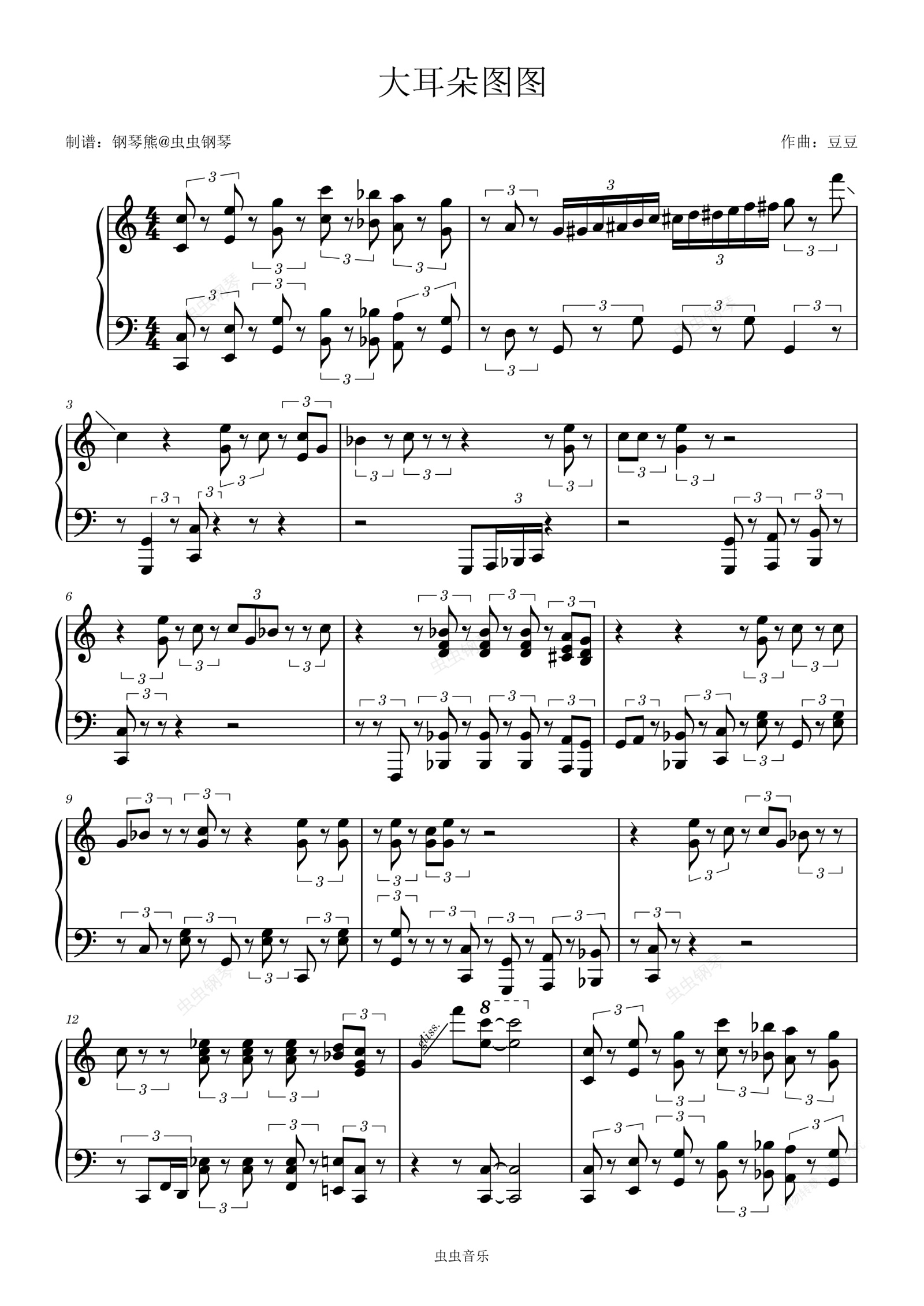 钢琴谱:大耳朵图图 快乐小孩 极致还原版