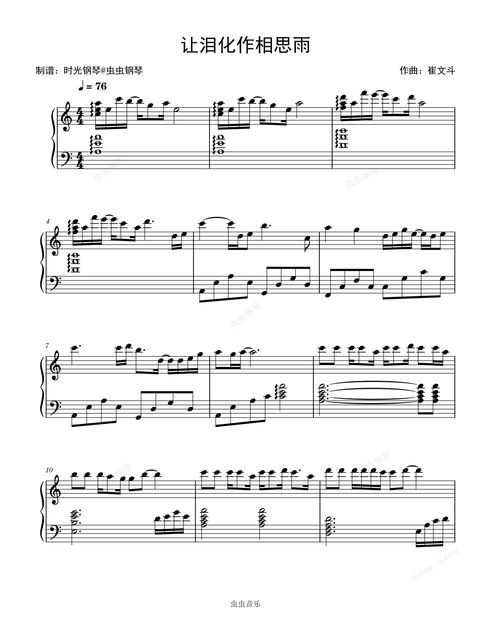 钢琴谱:让泪化作相思雨 南合文斗 简单好听