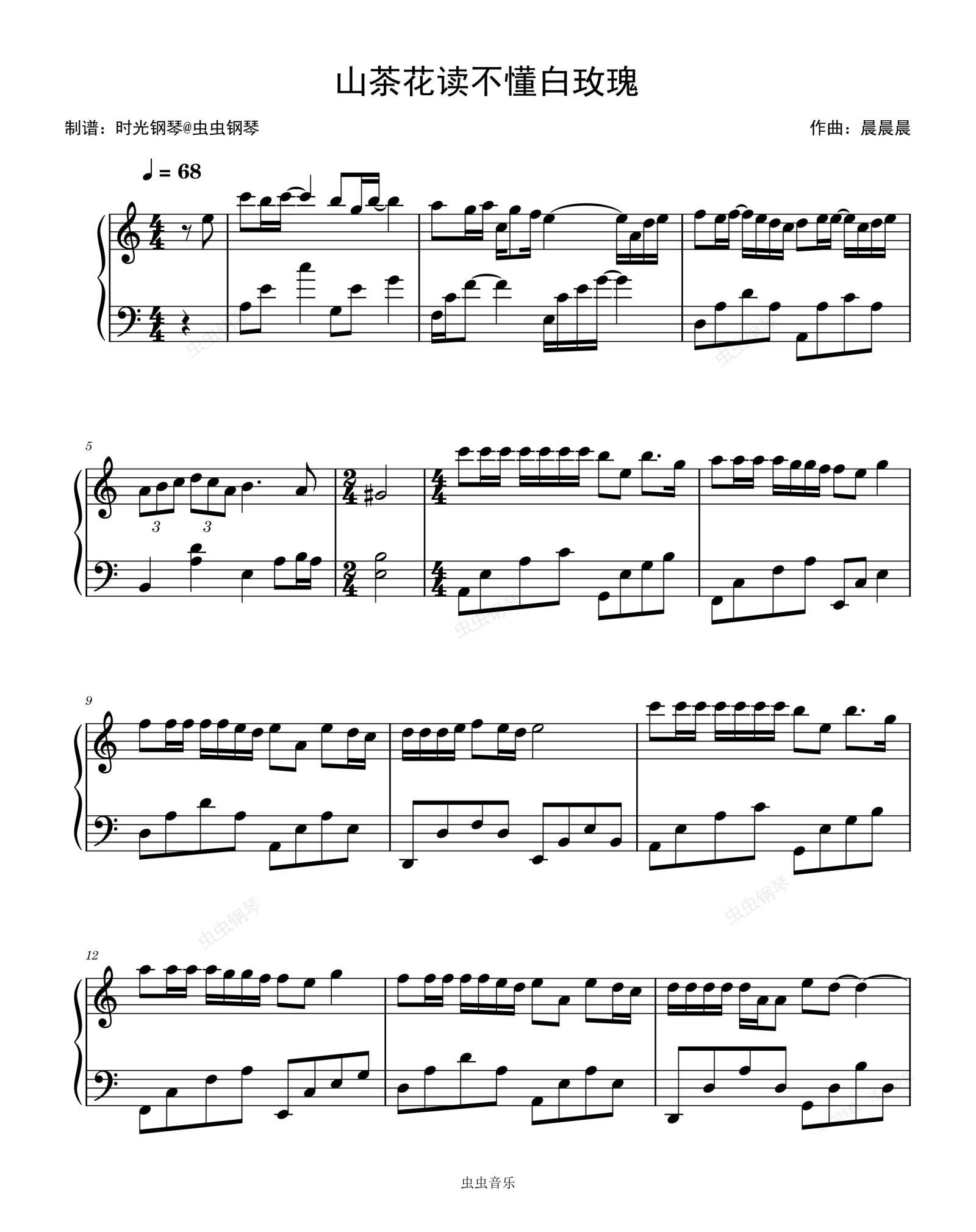 钢琴谱:山茶花读不懂白玫瑰 Lil笑笑 简单好听