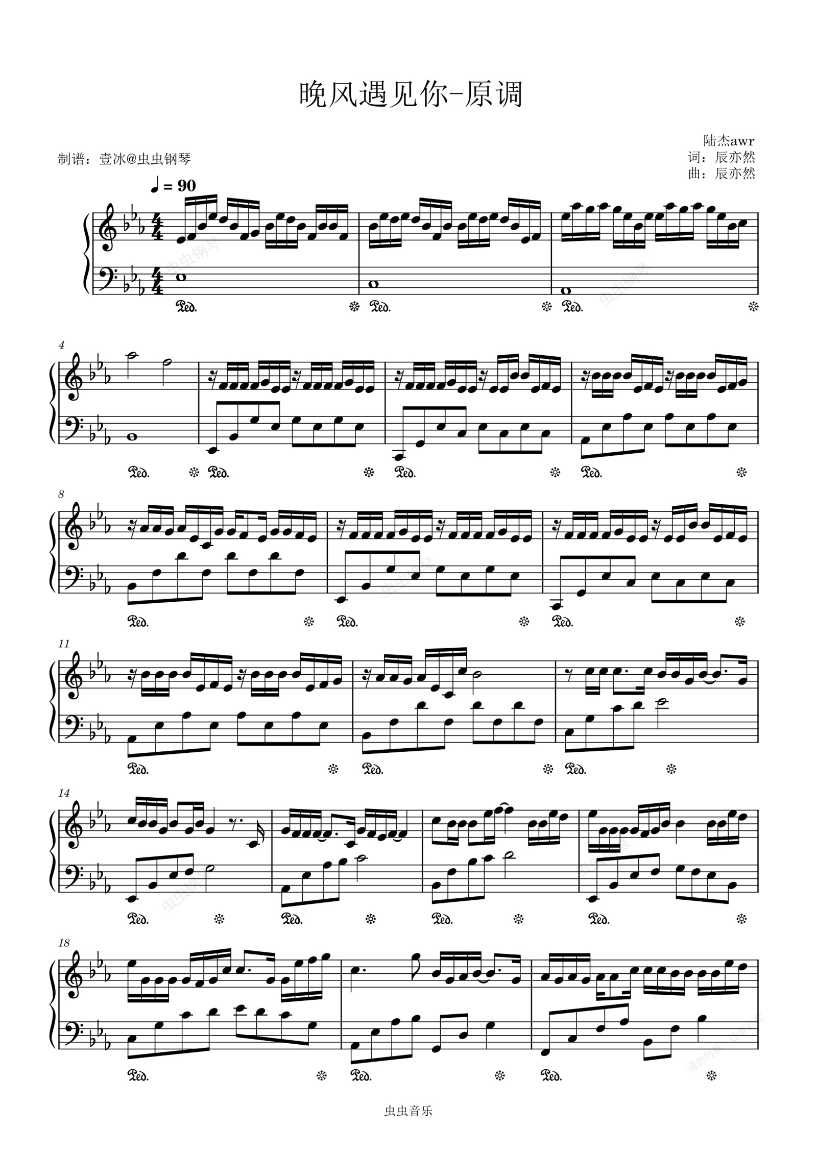 钢琴谱:【抖音热曲】晚风遇见你//陆杰awr-原调