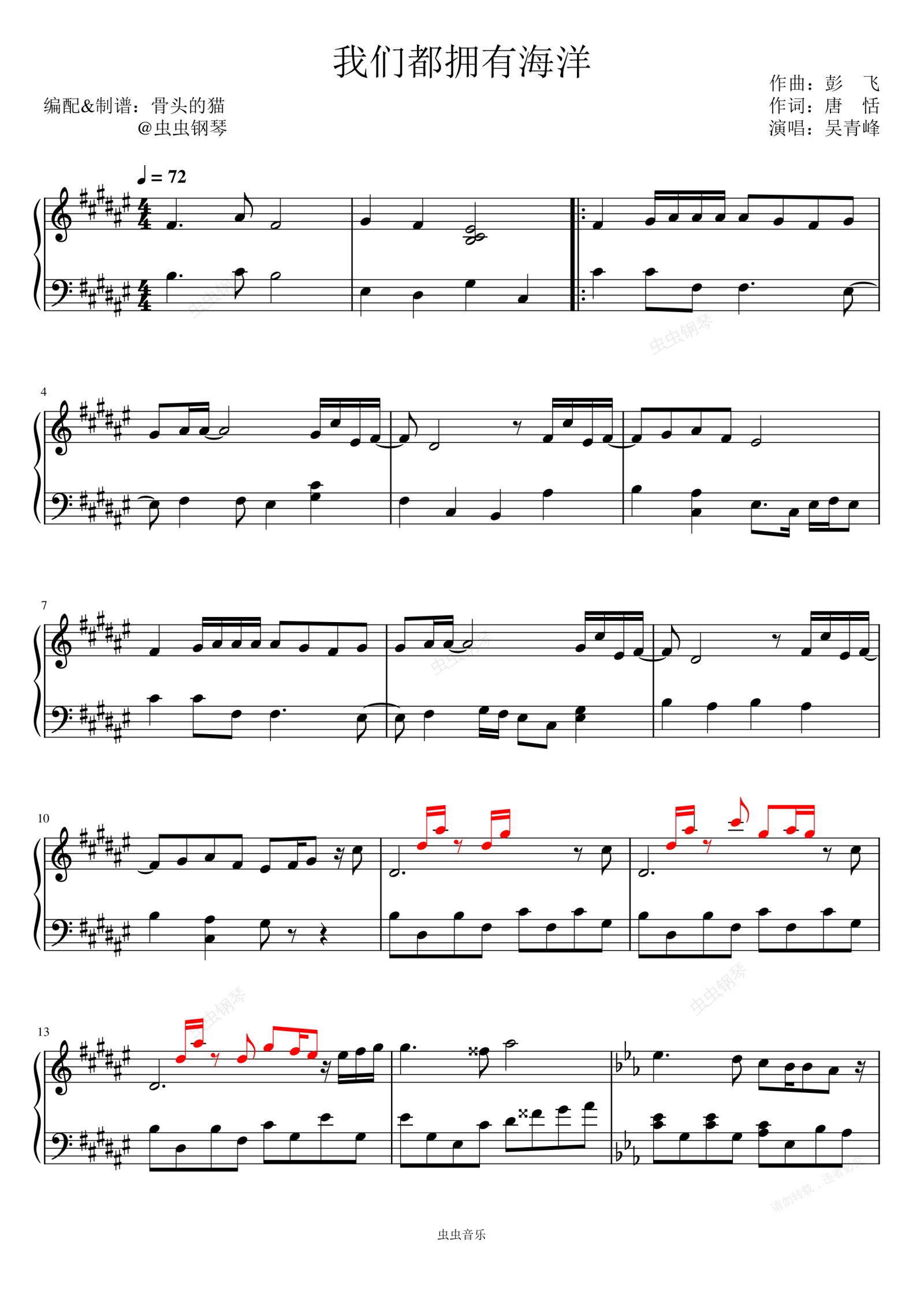 钢琴谱:我们都拥有海洋-吴青峰(简易版)
