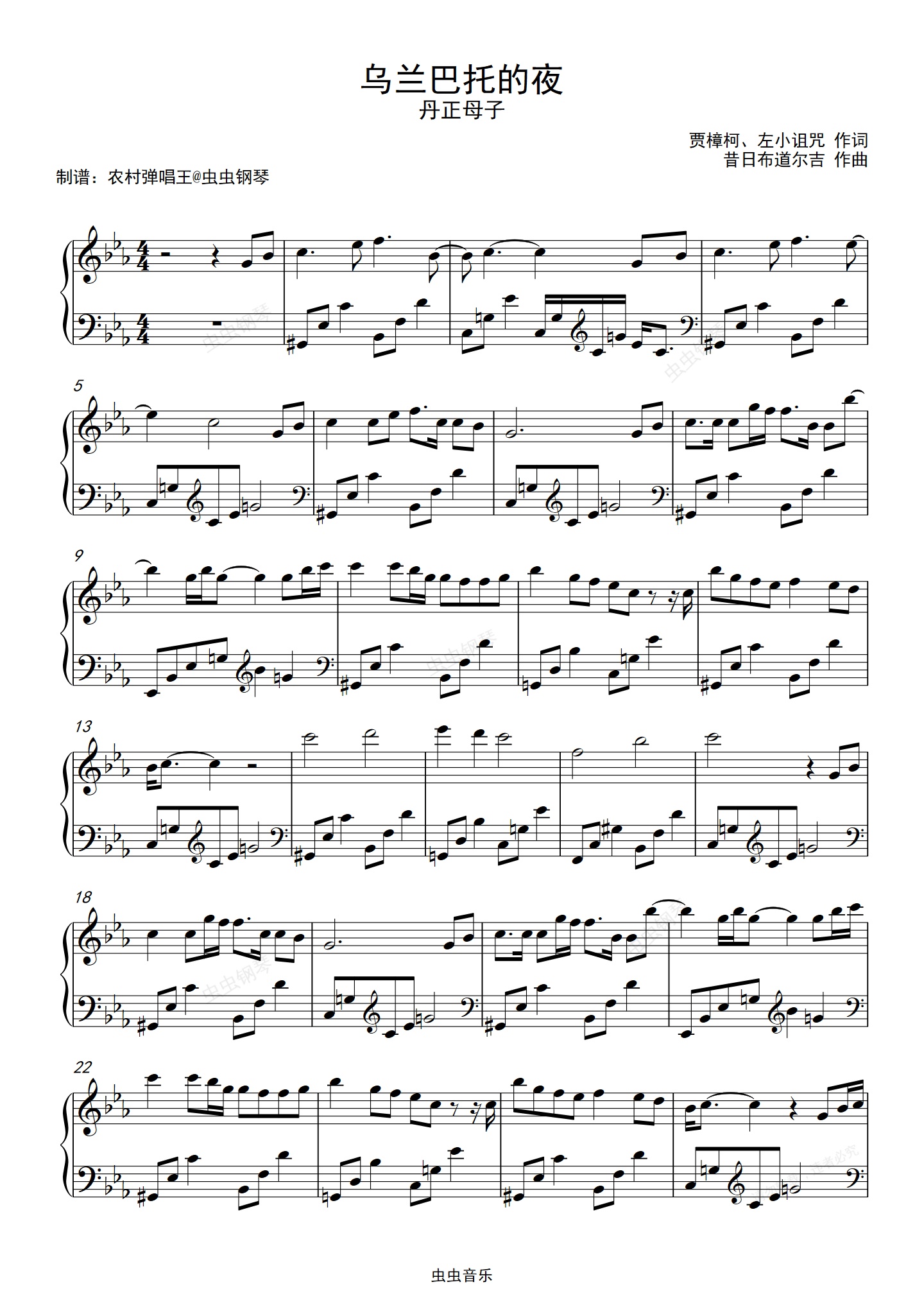 钢琴谱:乌兰巴托的夜-丹正母子-原调bE版独奏五线谱