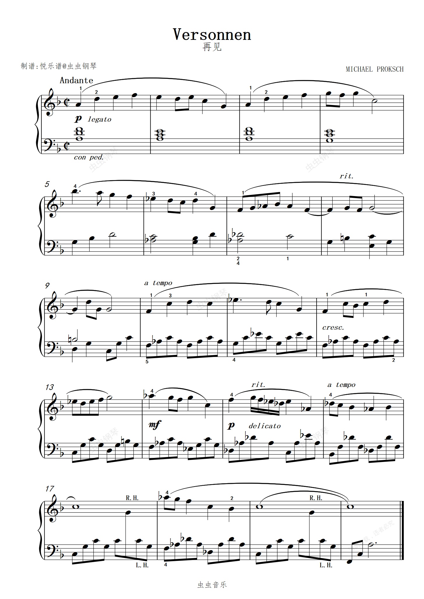 钢琴谱:再见//Versonnen 免费乐谱【治愈-唯美】