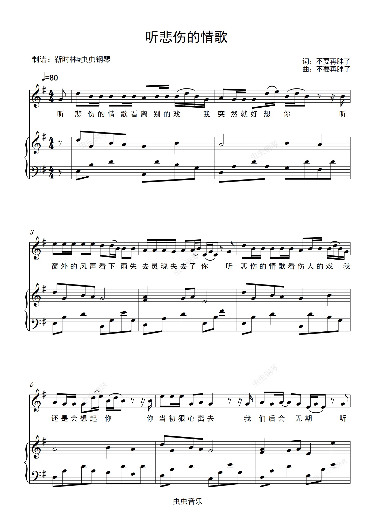 钢琴谱:《听悲伤的情歌》 原调复刻级弹唱谱