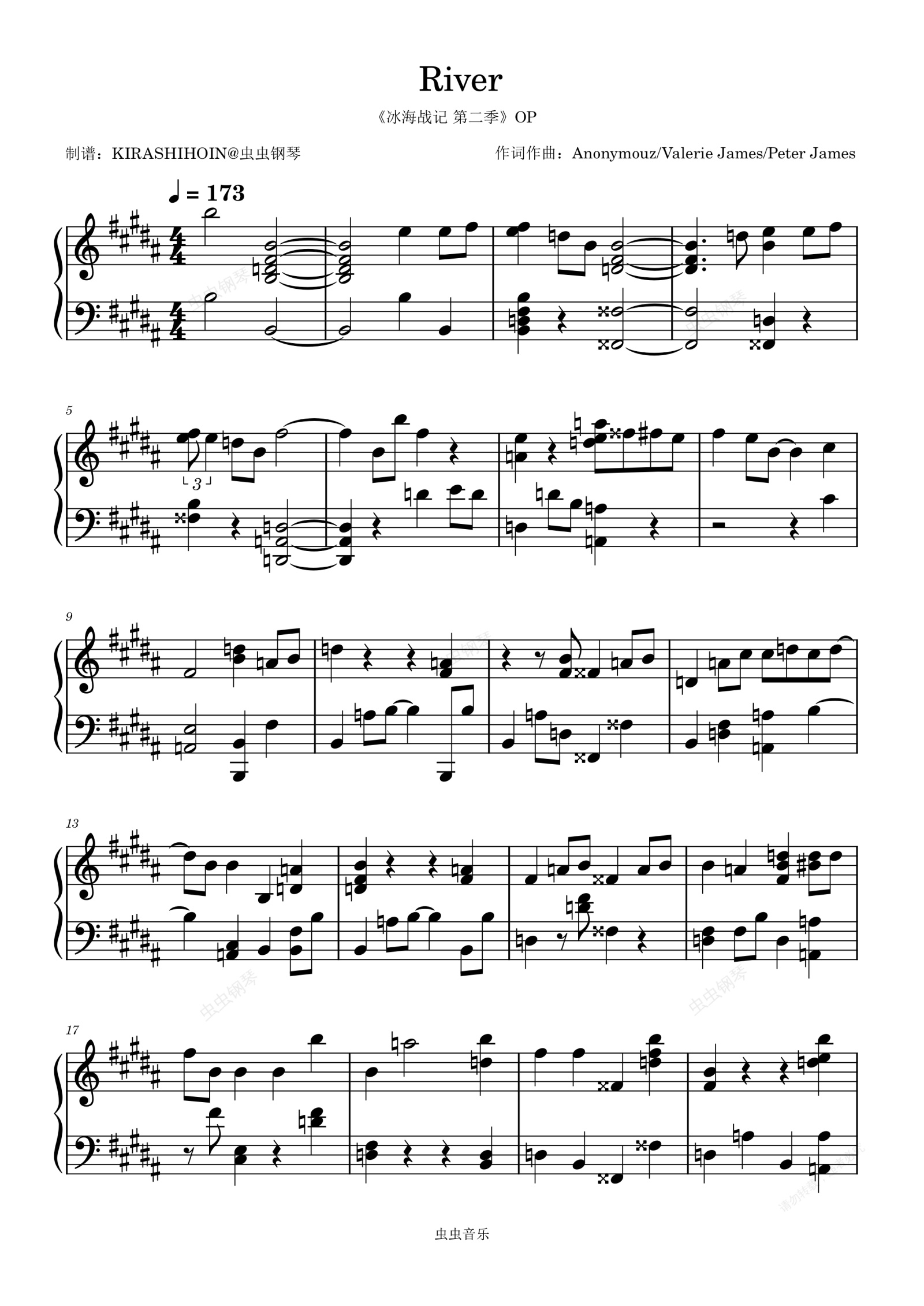 钢琴谱:River(《冰海战记 第二季》OP/片头曲)- Anonymouz