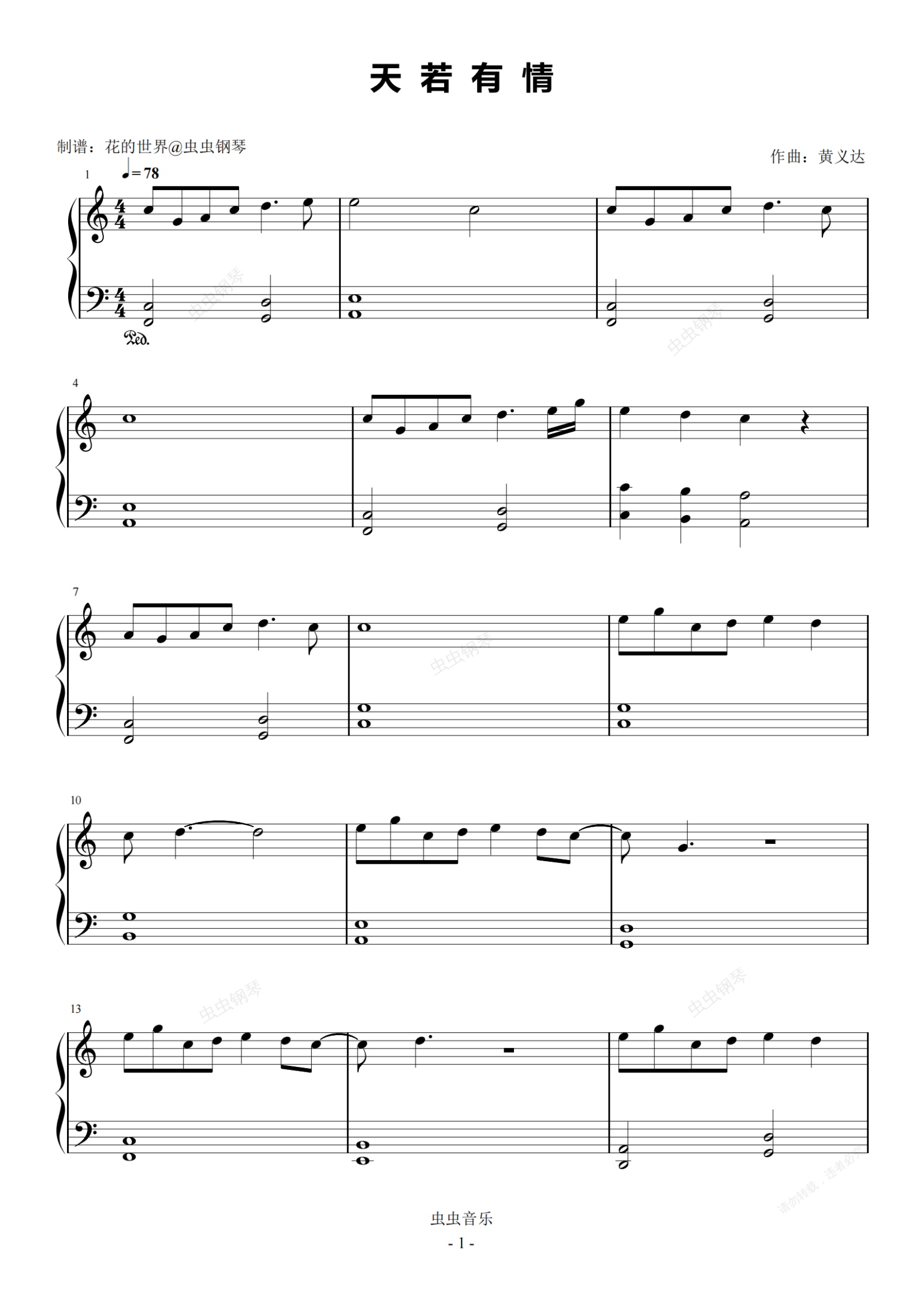 钢琴谱:天若有情 锦绣未央 C调简易版 Alin 黄丽玲