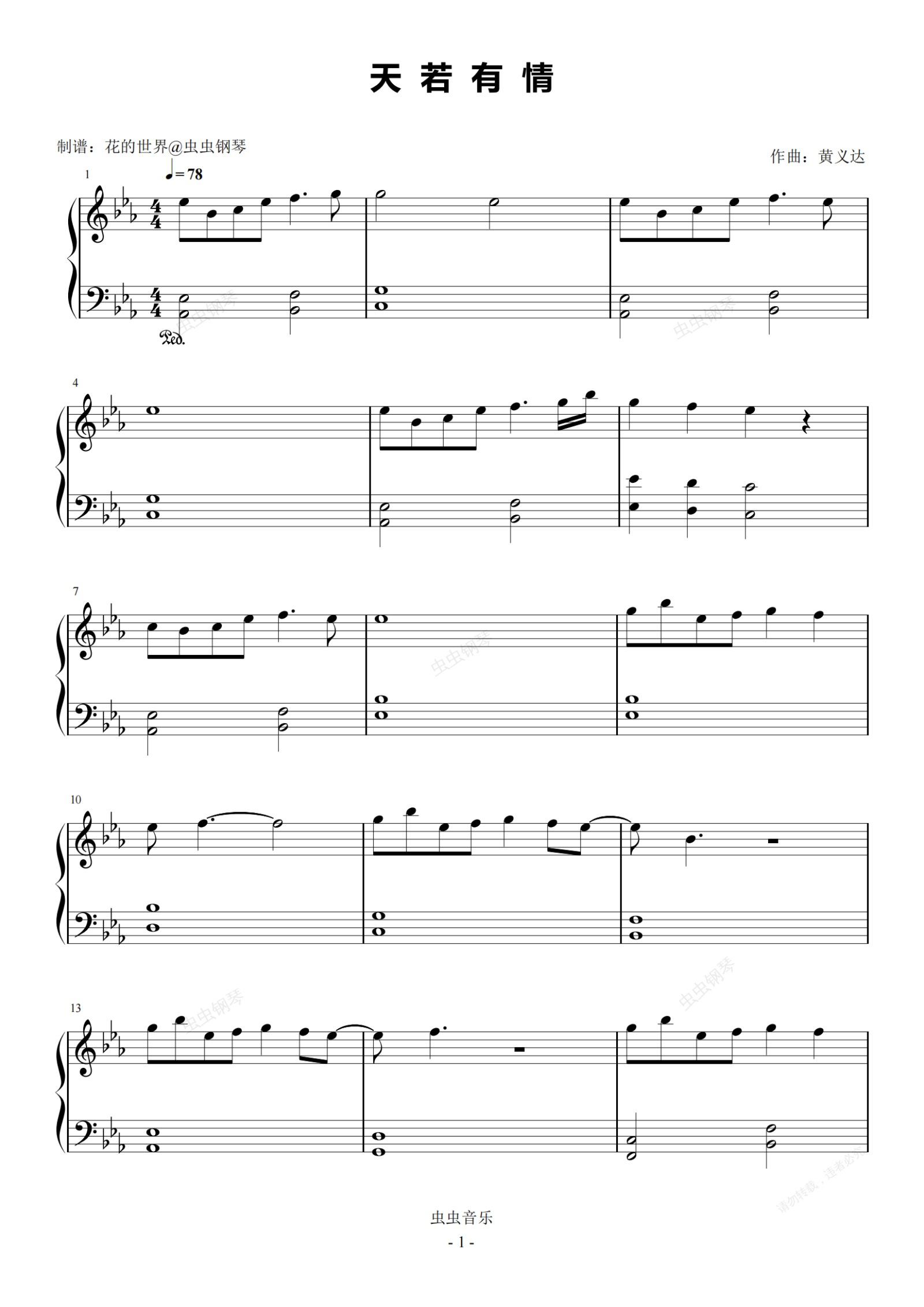 钢琴谱:天若有情 锦绣未央 原调简易版 Alin 黄丽玲