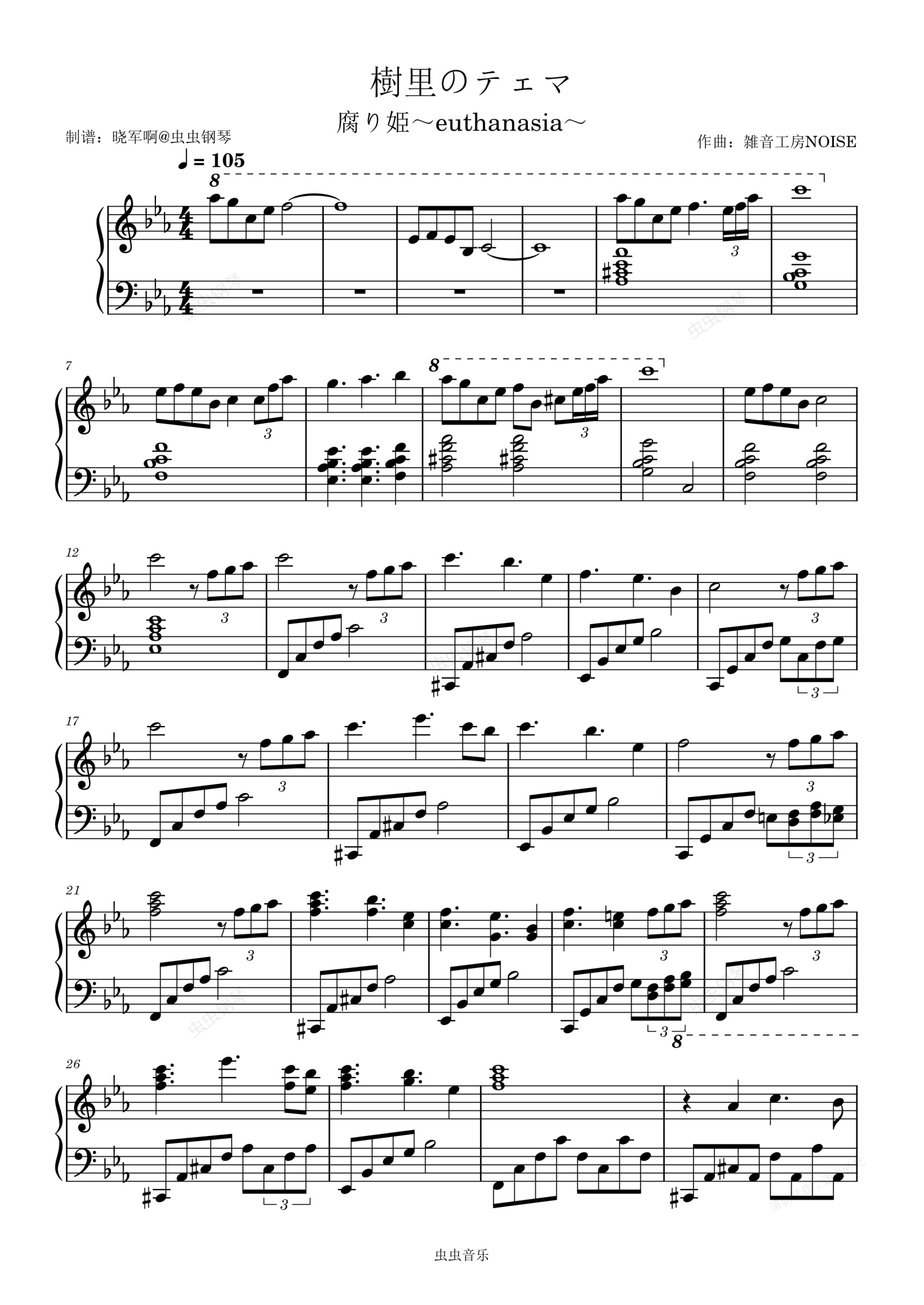 钢琴谱:【腐姬】樹里のテェマ