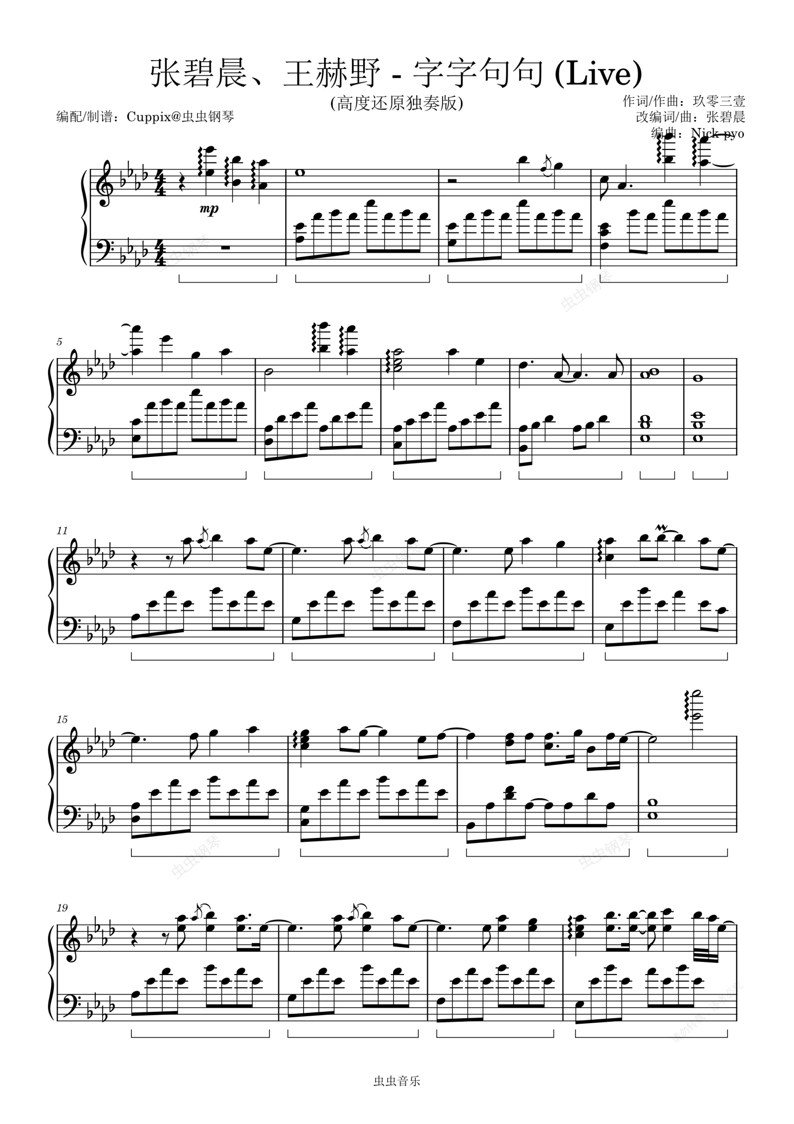 钢琴谱:《字字句句》高度还原独奏版(张碧晨、王赫野 Live版)