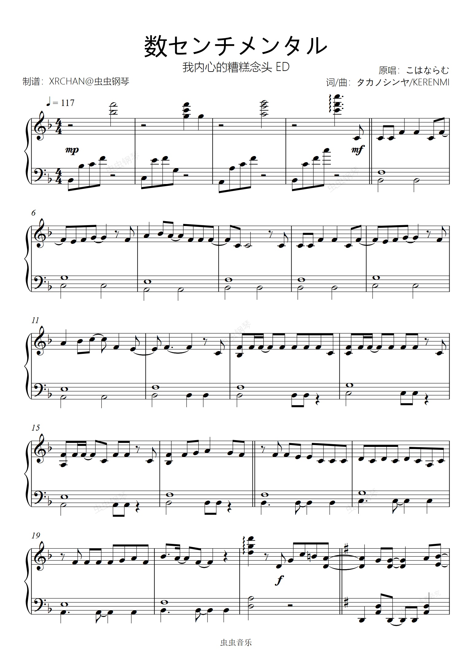 钢琴谱:数センチメンタル《我心里危险的东西》ED 初级(F调)