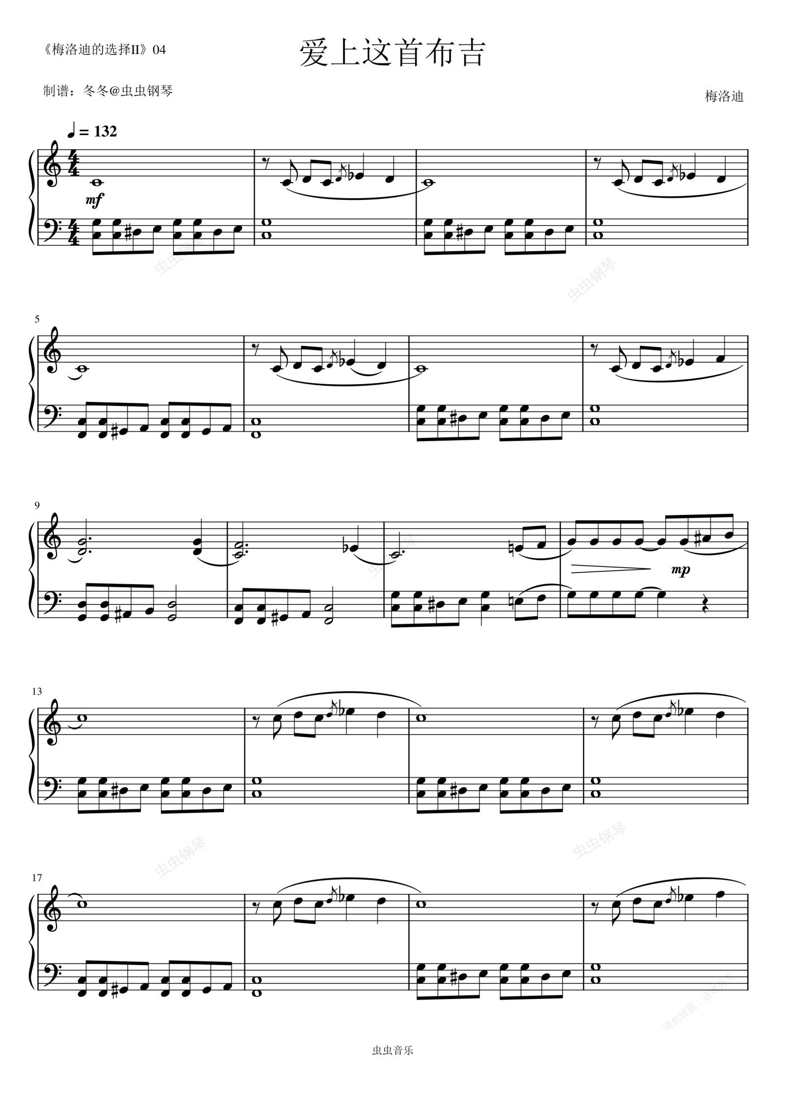 钢琴谱:爱上这首布吉