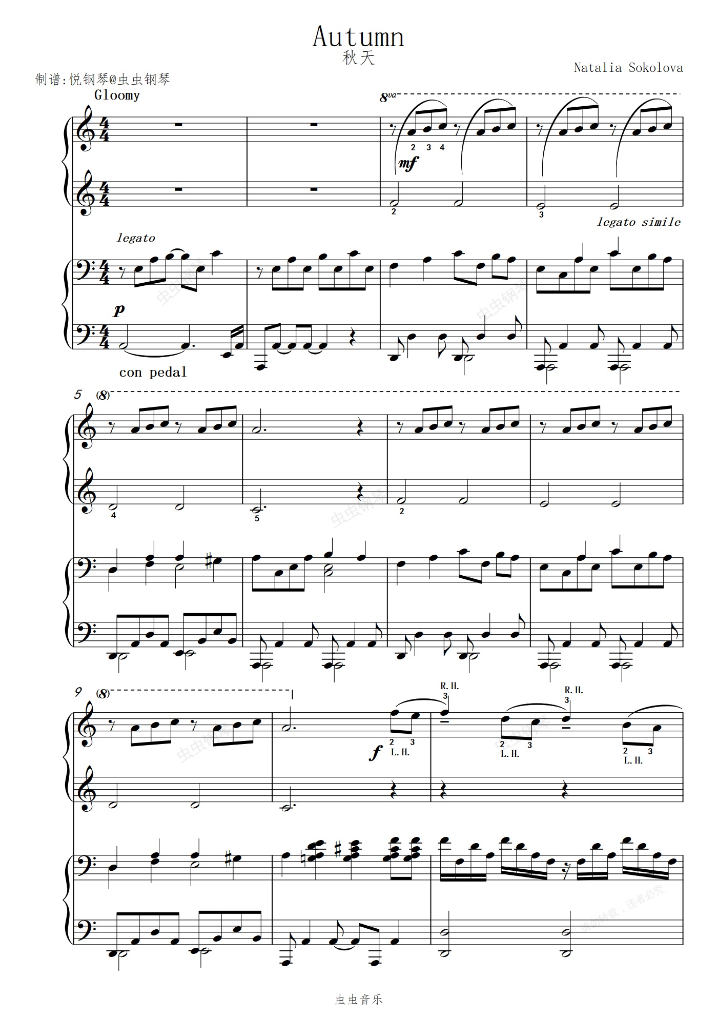 钢琴谱:秋天//Autumn 四手联弹 【唯美-治愈】