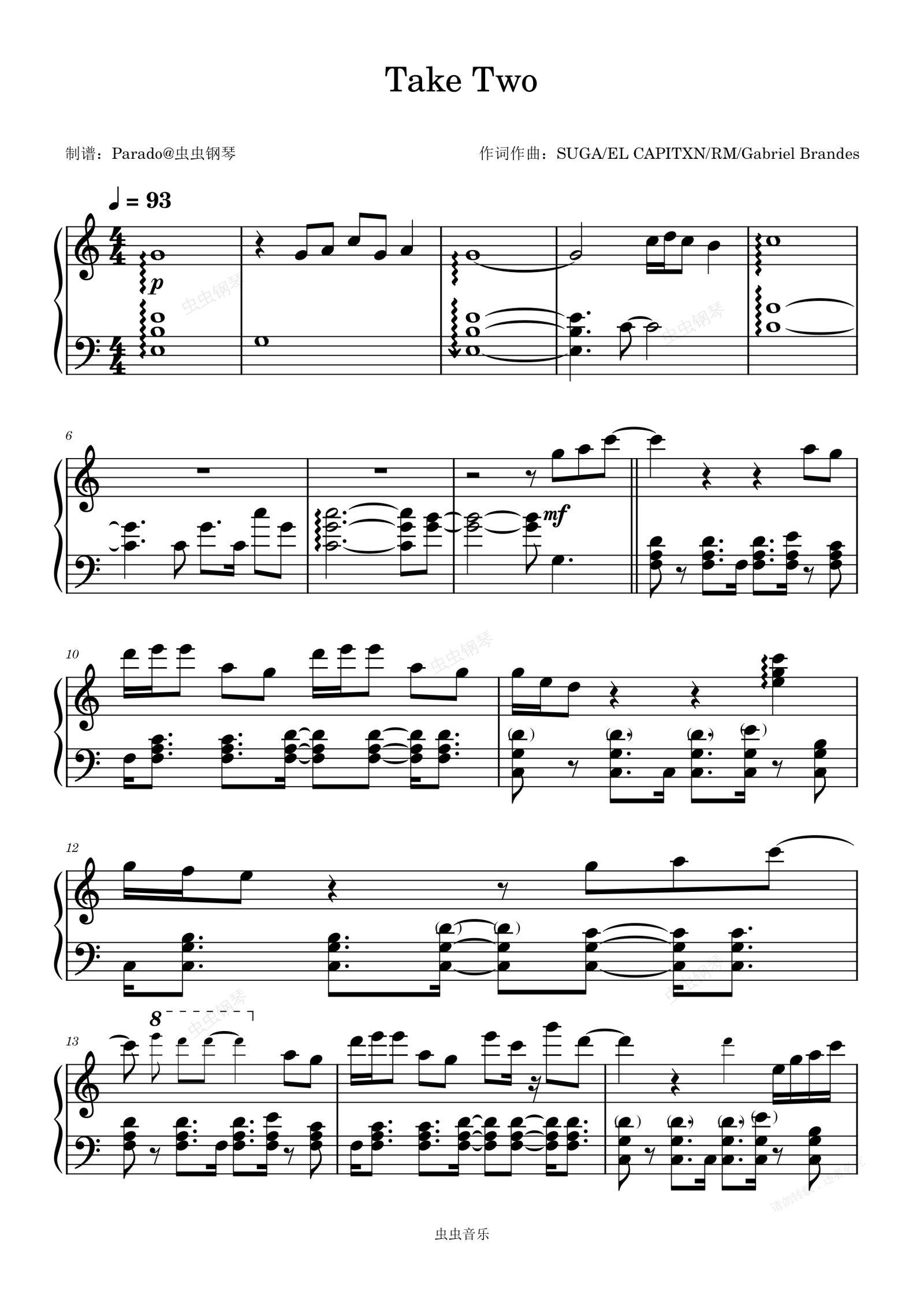 钢琴谱:【火爆新曲】Take Two[C调] - BTS