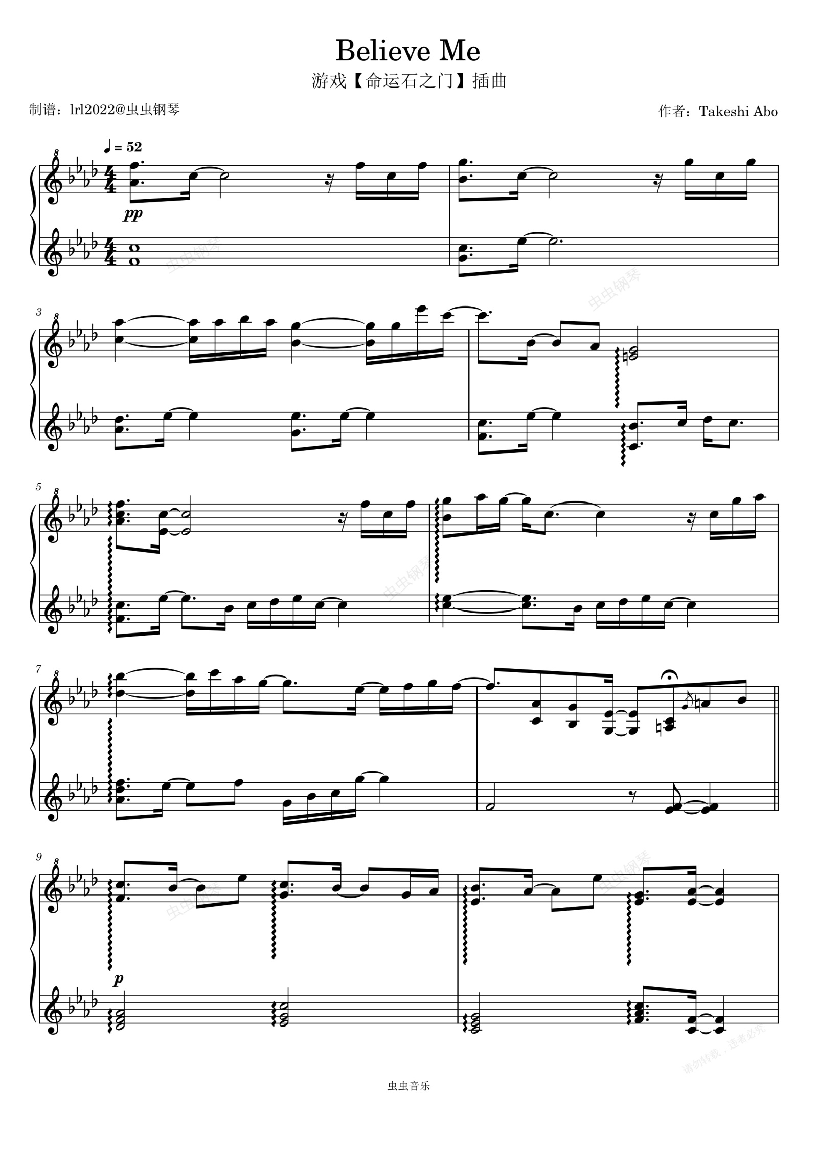 钢琴谱:Believe Me - 游戏【命运石之门】插曲 - 钢琴独奏