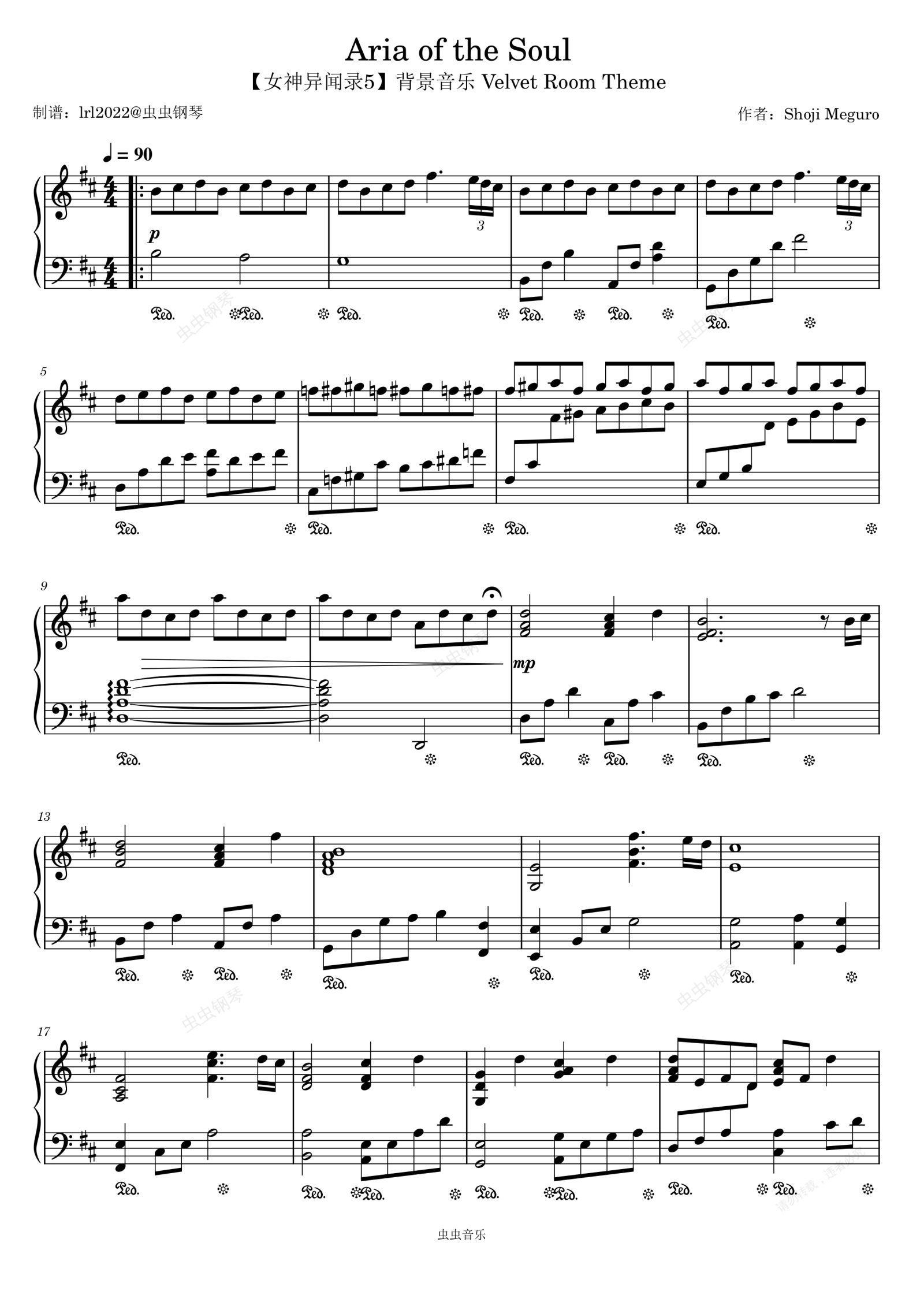 钢琴谱:Aria of the Soul - 【女神异闻录5】背景音乐 - 钢琴独奏 - Velvet Room Theme