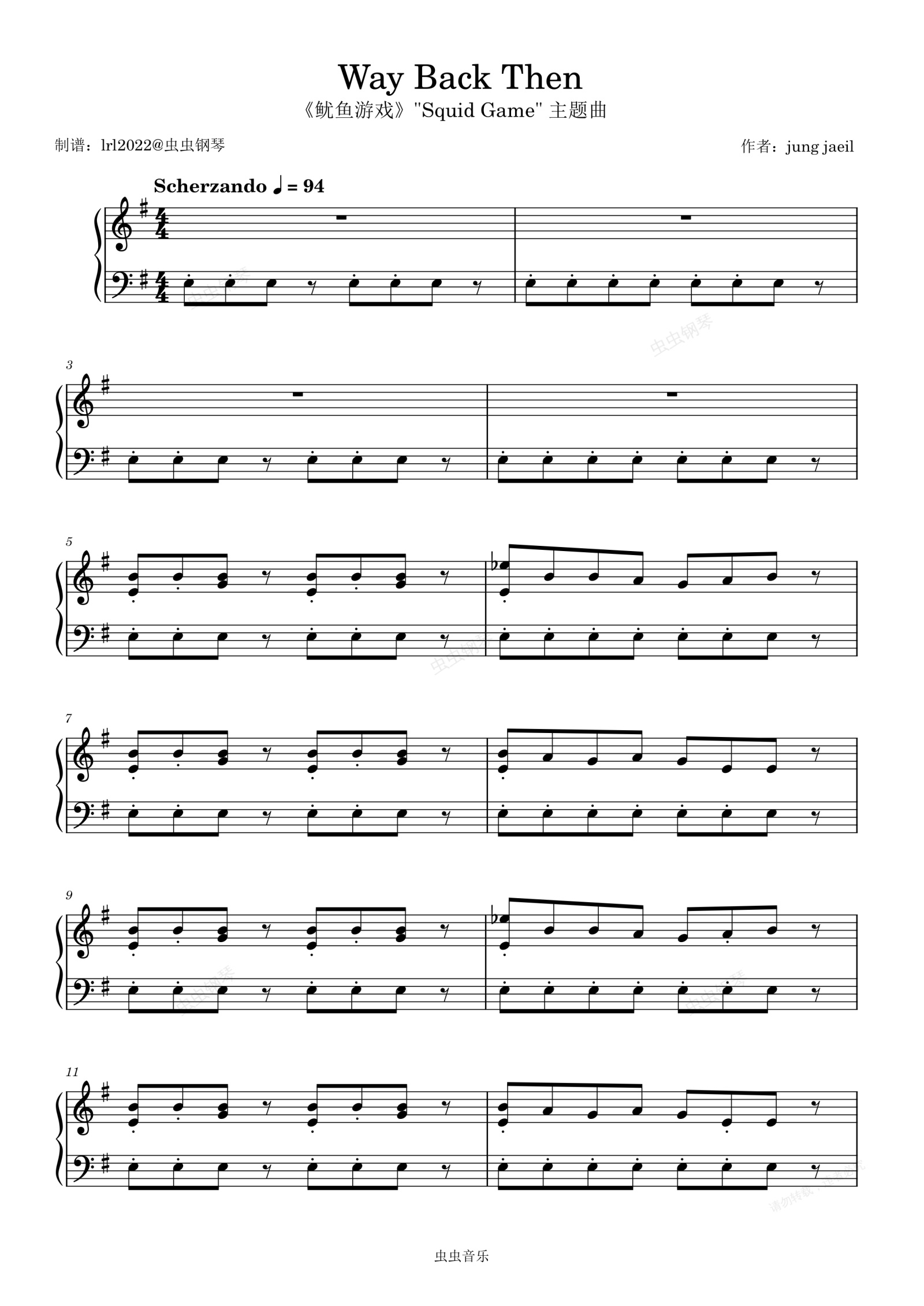 钢琴谱:Way Back Then - 《鱿鱼游戏》主题曲 - 钢琴独奏