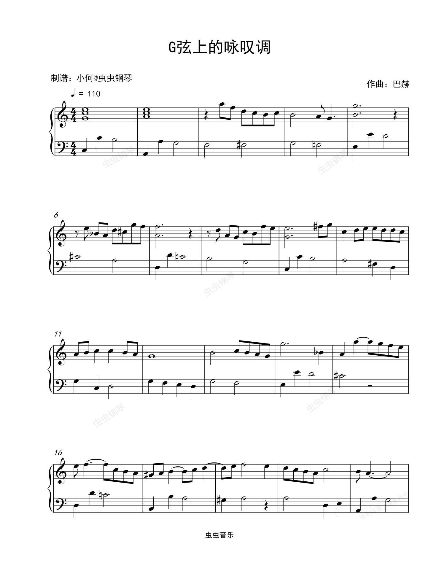 钢琴谱:G弦上的咏叹调-Aria Sul G-巴赫