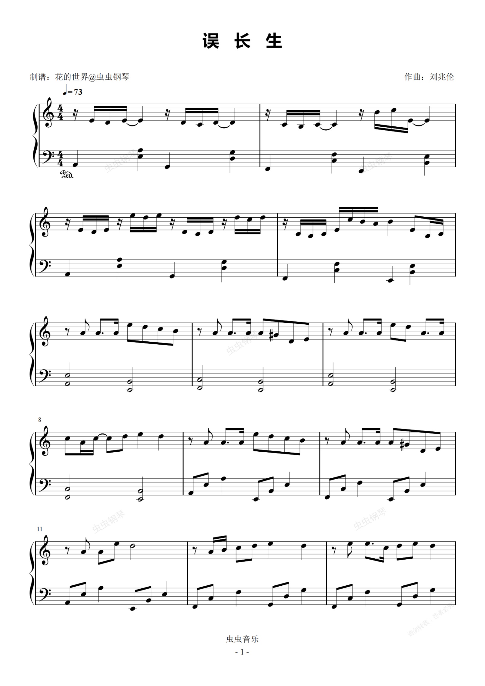钢琴谱:误长生 花戎 C调简易版 鞠婧祎