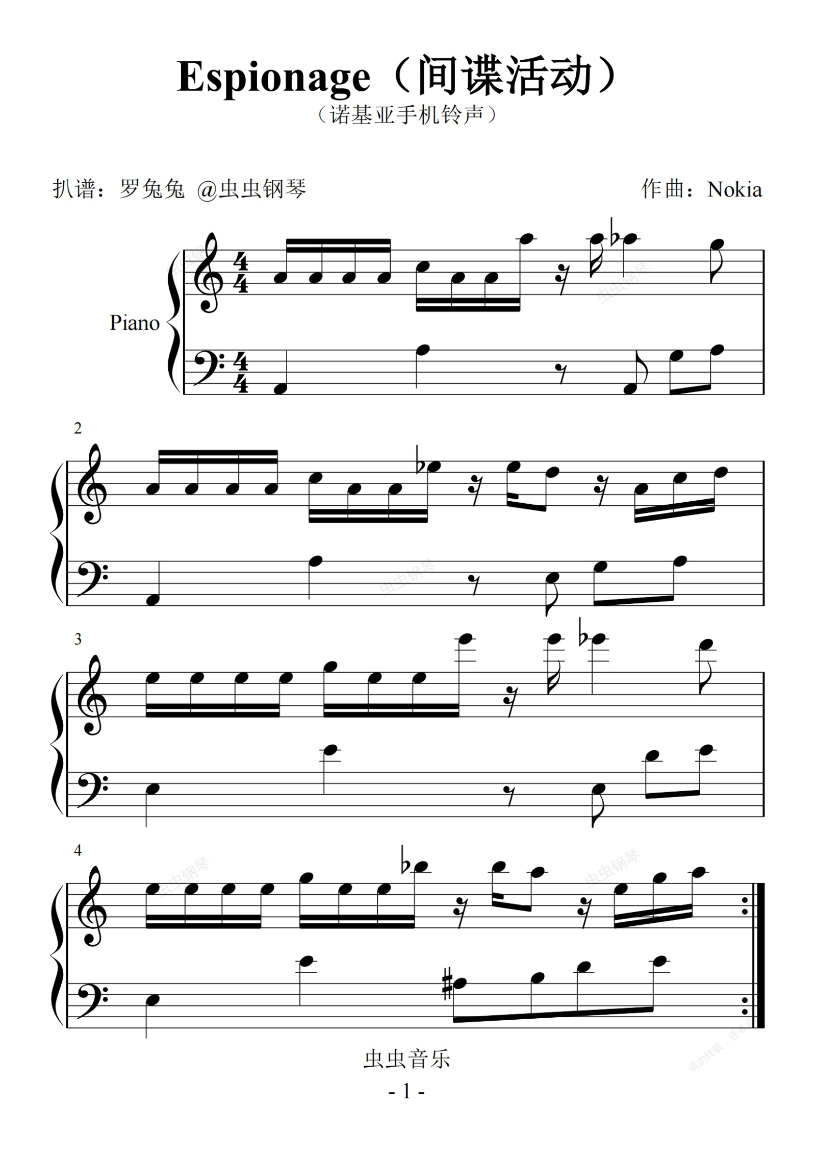 钢琴谱:Espionage(间谍活动)(诺基亚手机铃声)