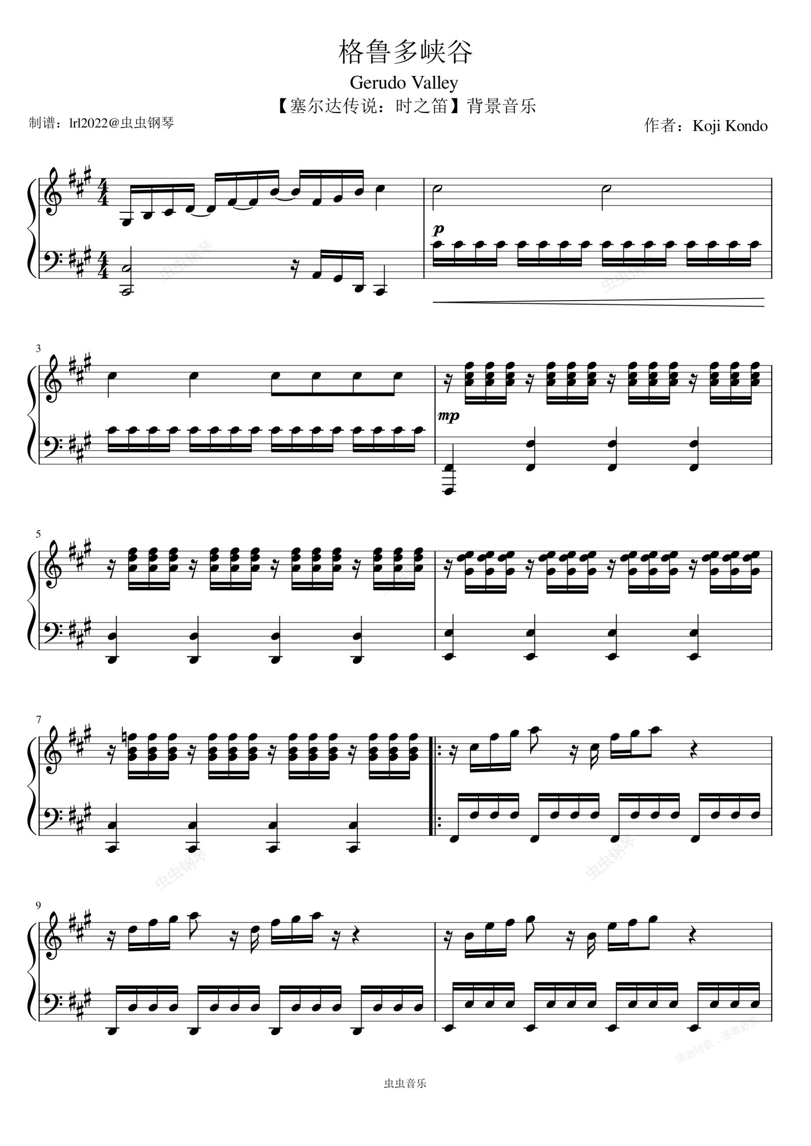 钢琴谱:Gerudo Valley - 格鲁多峡谷 - 【塞尔达传说:时之笛】背景音乐 - 钢琴独奏