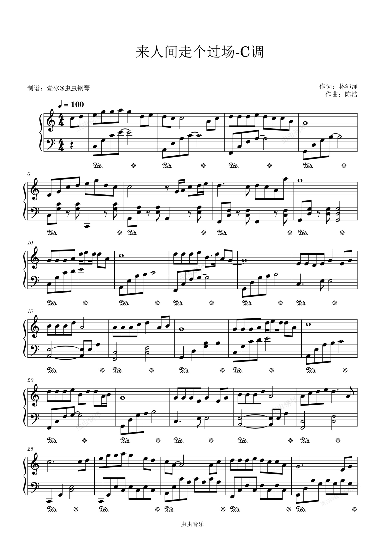 钢琴谱:【网络热曲】来人间走个过场//王超然-C调