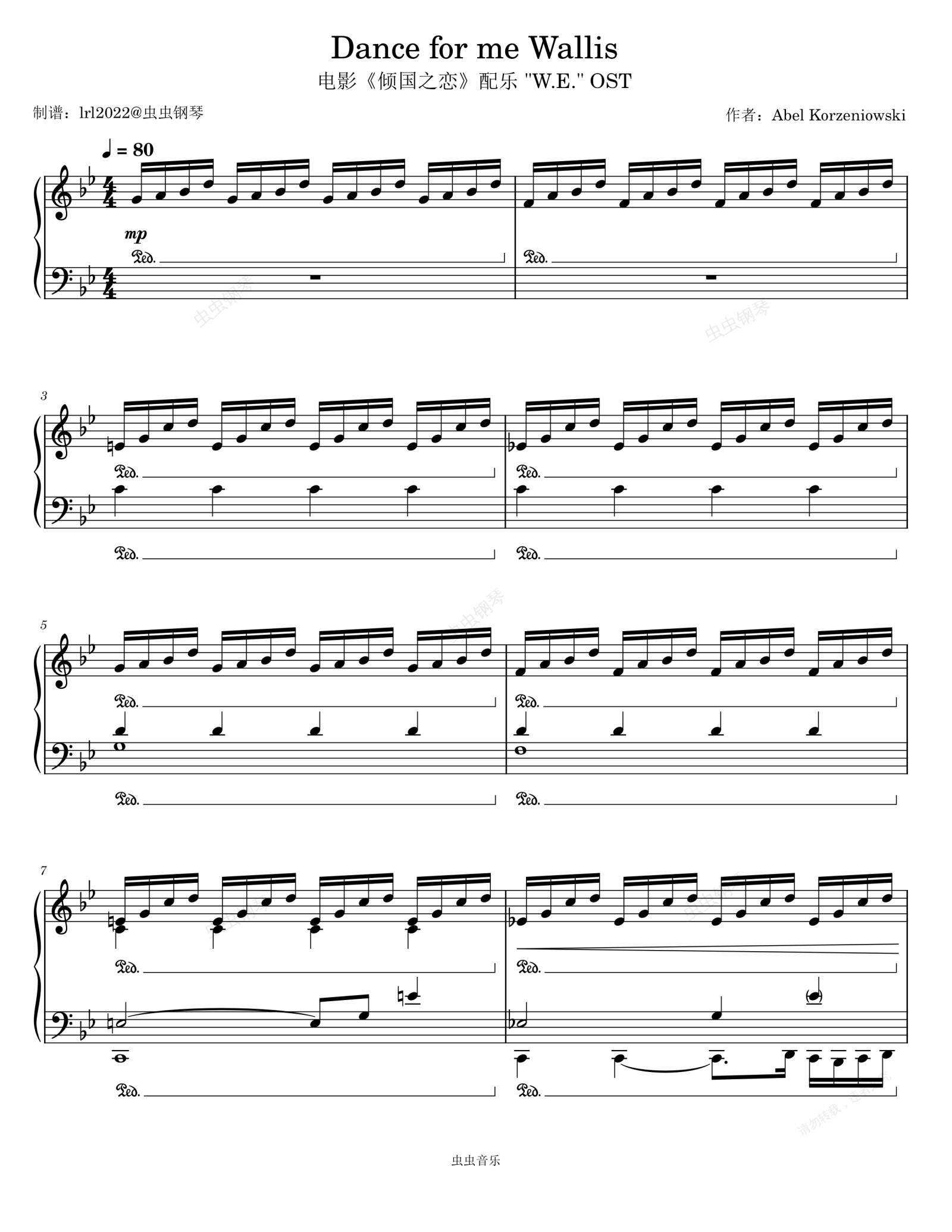 钢琴谱:Dance for me Wallis - 电影《倾国之恋》配乐 - 钢琴独奏 - "W.E." OST