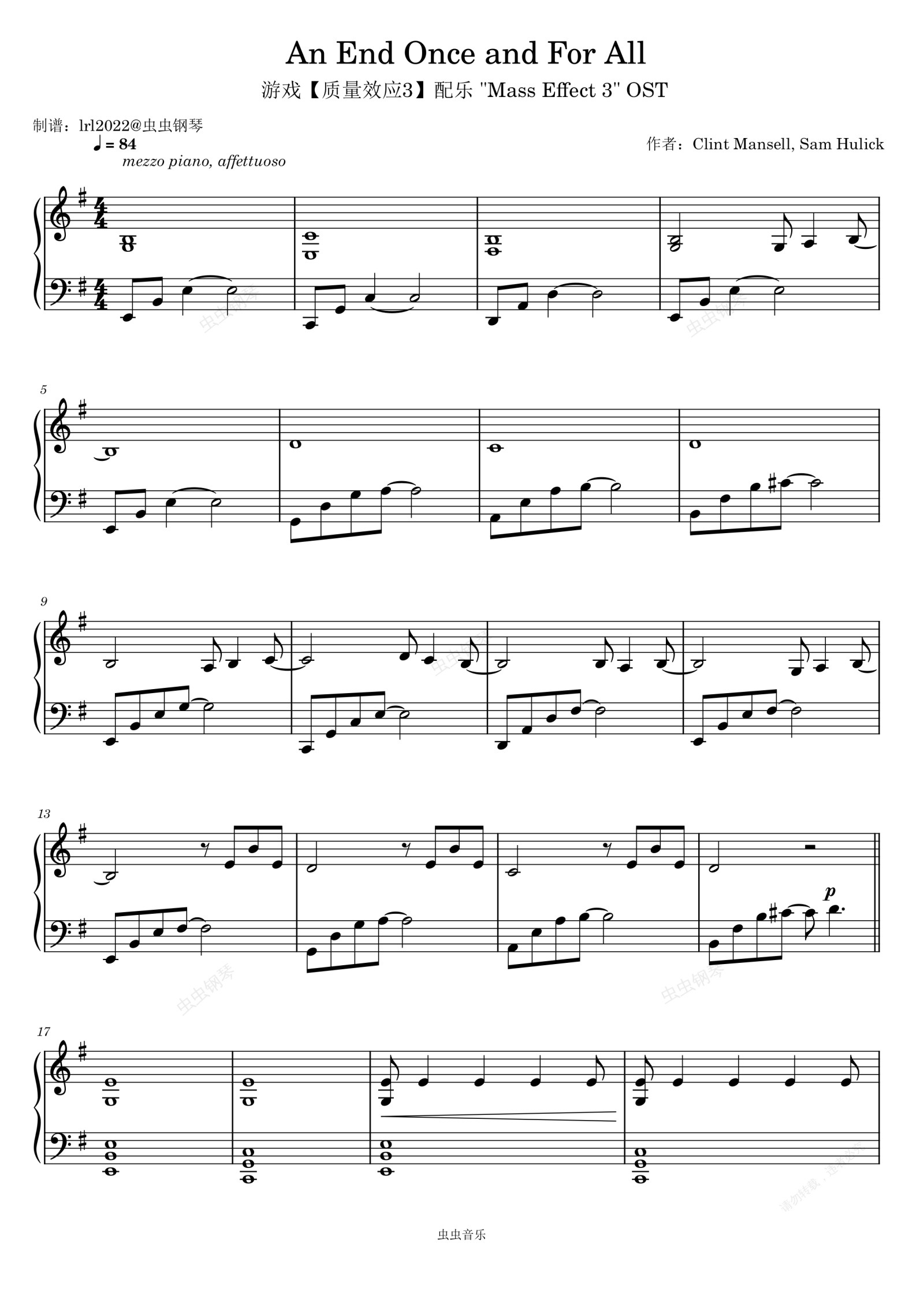钢琴谱:An End Once and For All - 游戏【质量效应3】配乐 - 钢琴独奏 - "Mass Effect 3" OST