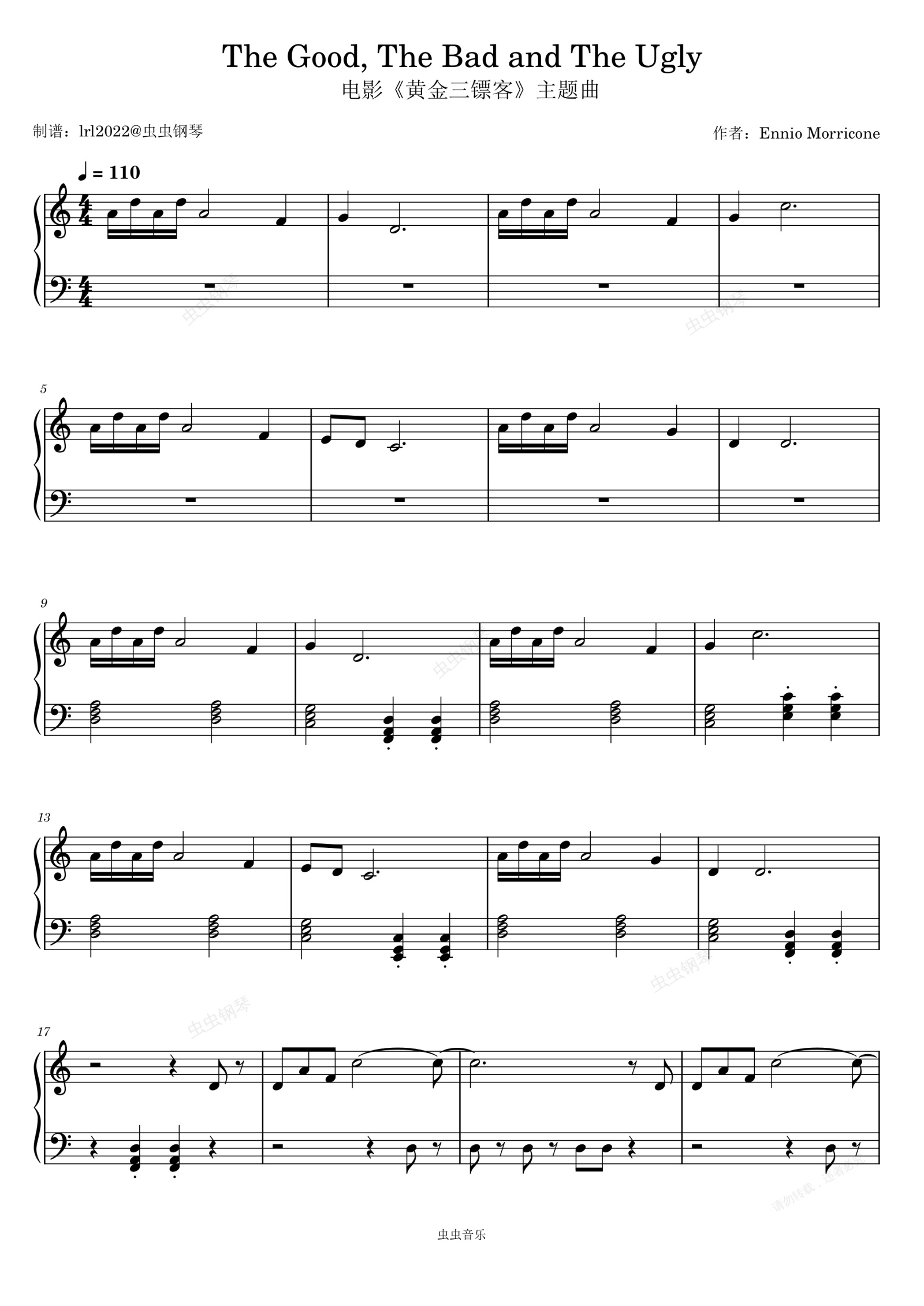 钢琴谱:The Good The Bad and The Ugly - 电影《黄金三镖客》主题曲 - 钢琴独奏简单版