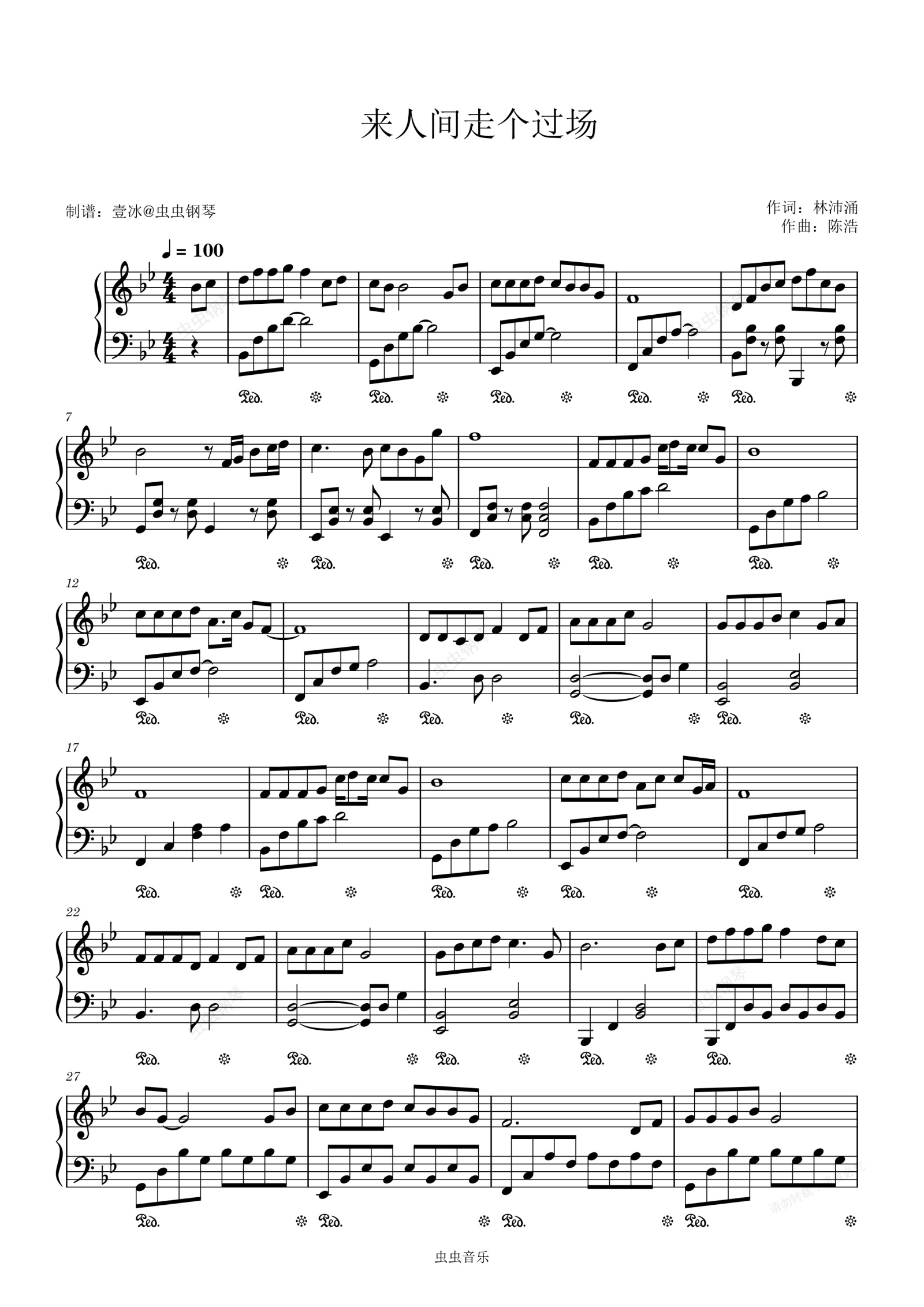 钢琴谱:【网络热曲】来人间走个过场//王超然-原调