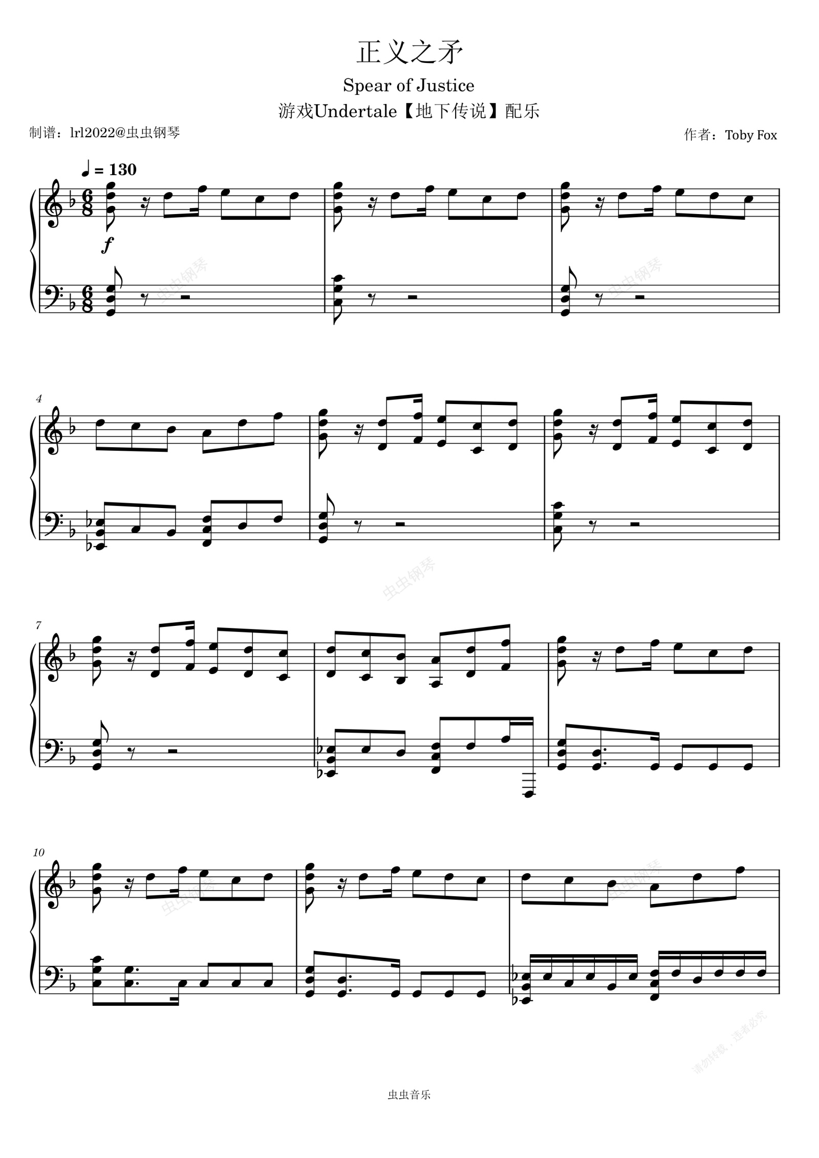 钢琴谱:Spear Of Justice 正义之矛 - 游戏【地下传说】配乐 - 钢琴独奏 - Undertale