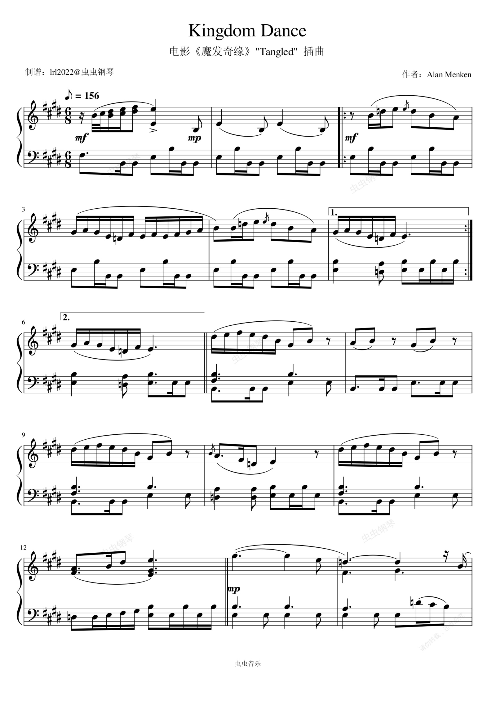 钢琴谱:Kingdom dance – "Tangled" - 电影《魔发奇缘》插曲 - 钢琴独奏