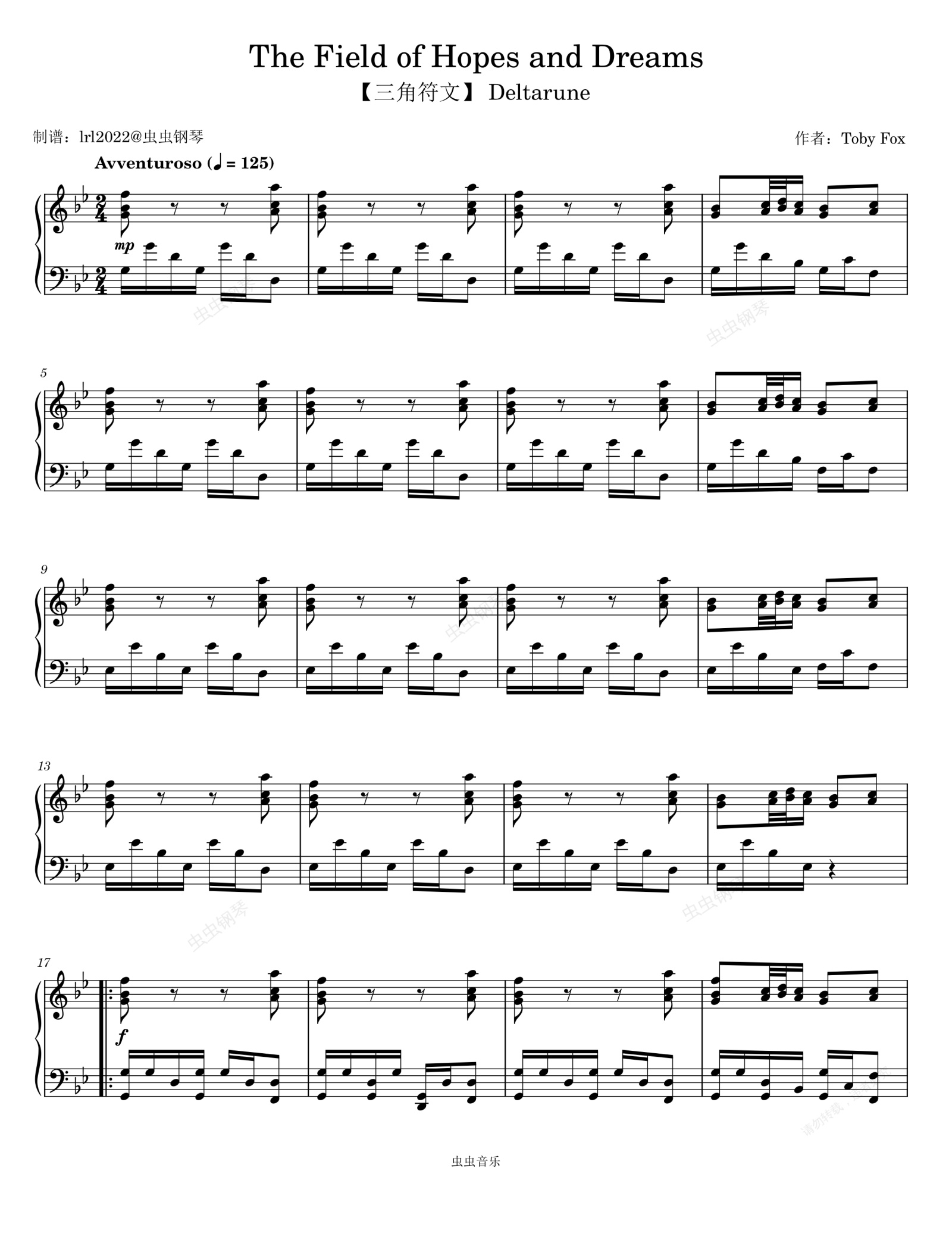 钢琴谱:Field of Hopes and Dreams - 【三角符文】 - 钢琴独奏 - Deltarune