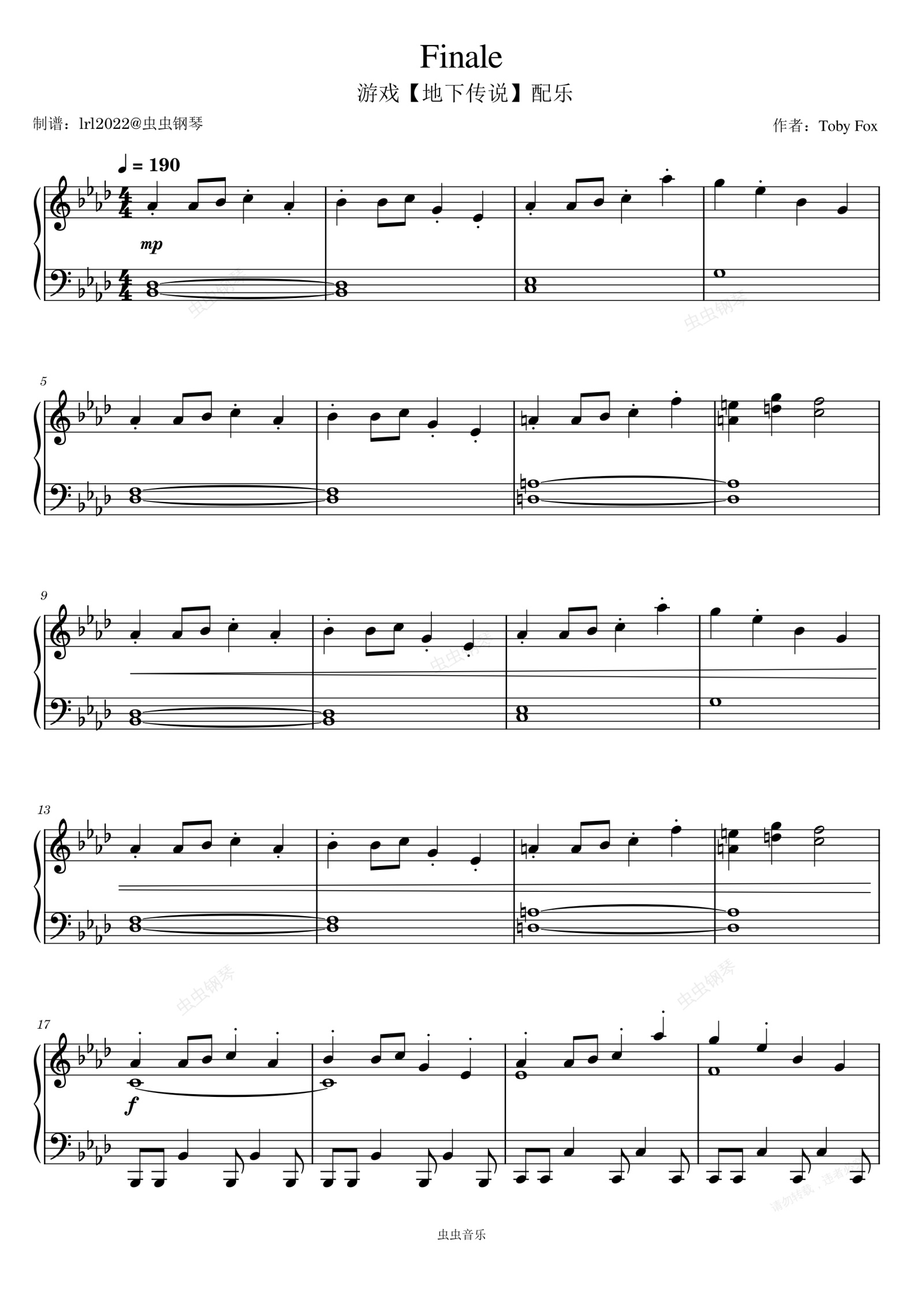 钢琴谱:Finale - 游戏【地下传说】配乐 - 钢琴独奏 - Undertale