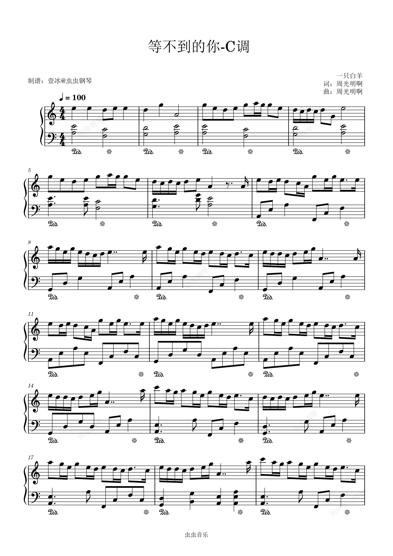 钢琴谱:【网络热曲】等不到的你//一只白羊-C调
