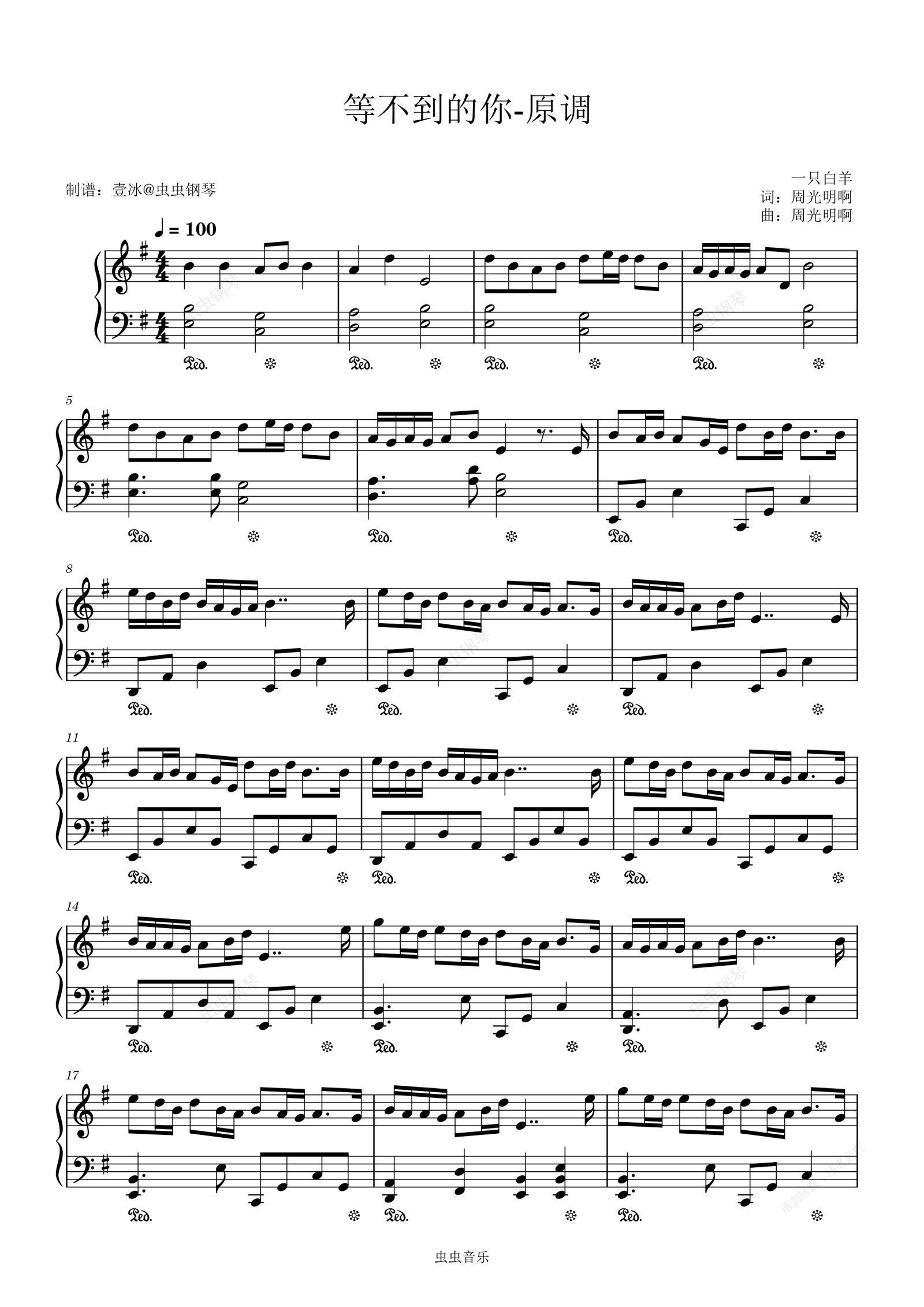 钢琴谱:【网络热曲】等不到的你//一只白羊-原调