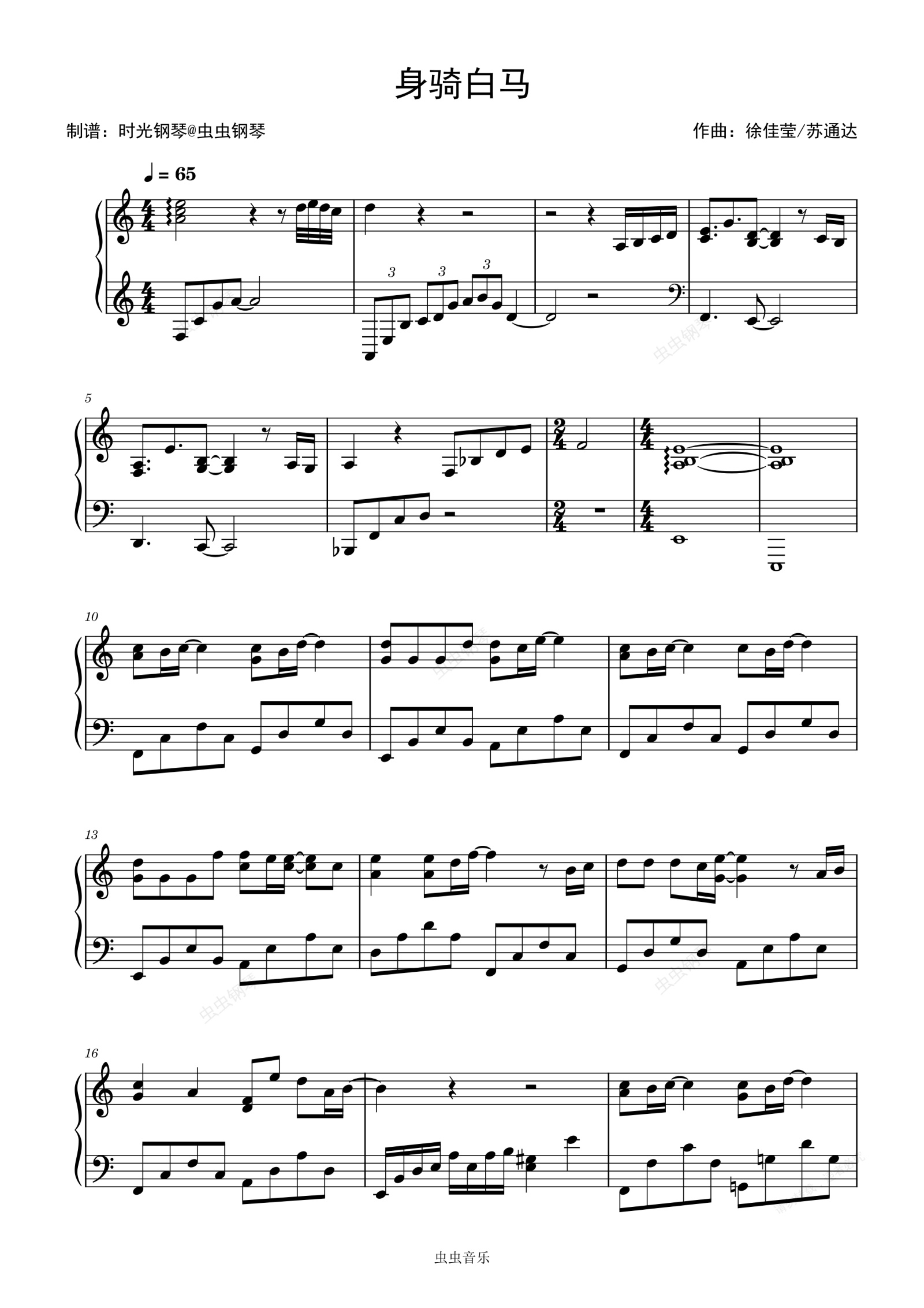 钢琴谱:身骑白马 徐佳莹 简单好听