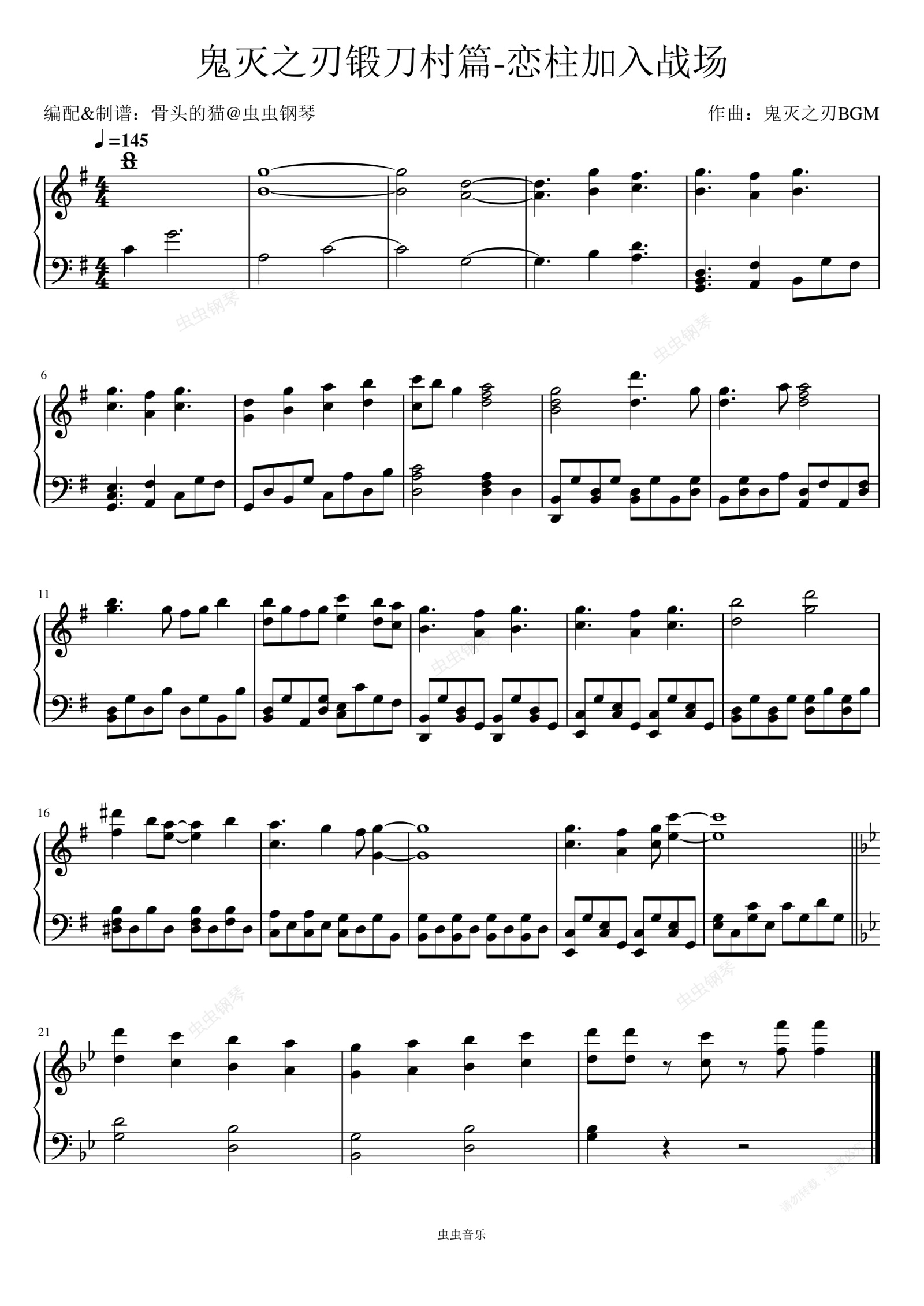 钢琴谱:鬼灭之刃锻刀村篇-恋柱加入战斗BGM