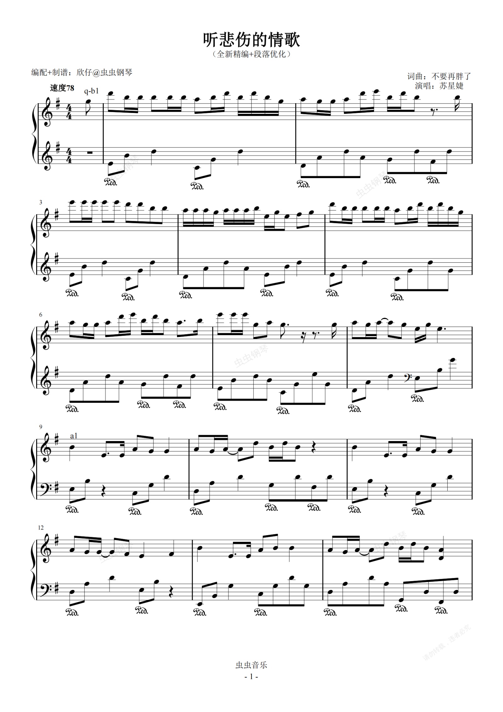 钢琴谱:苏星婕-e《听悲伤的情歌》(全新精编+完整版)