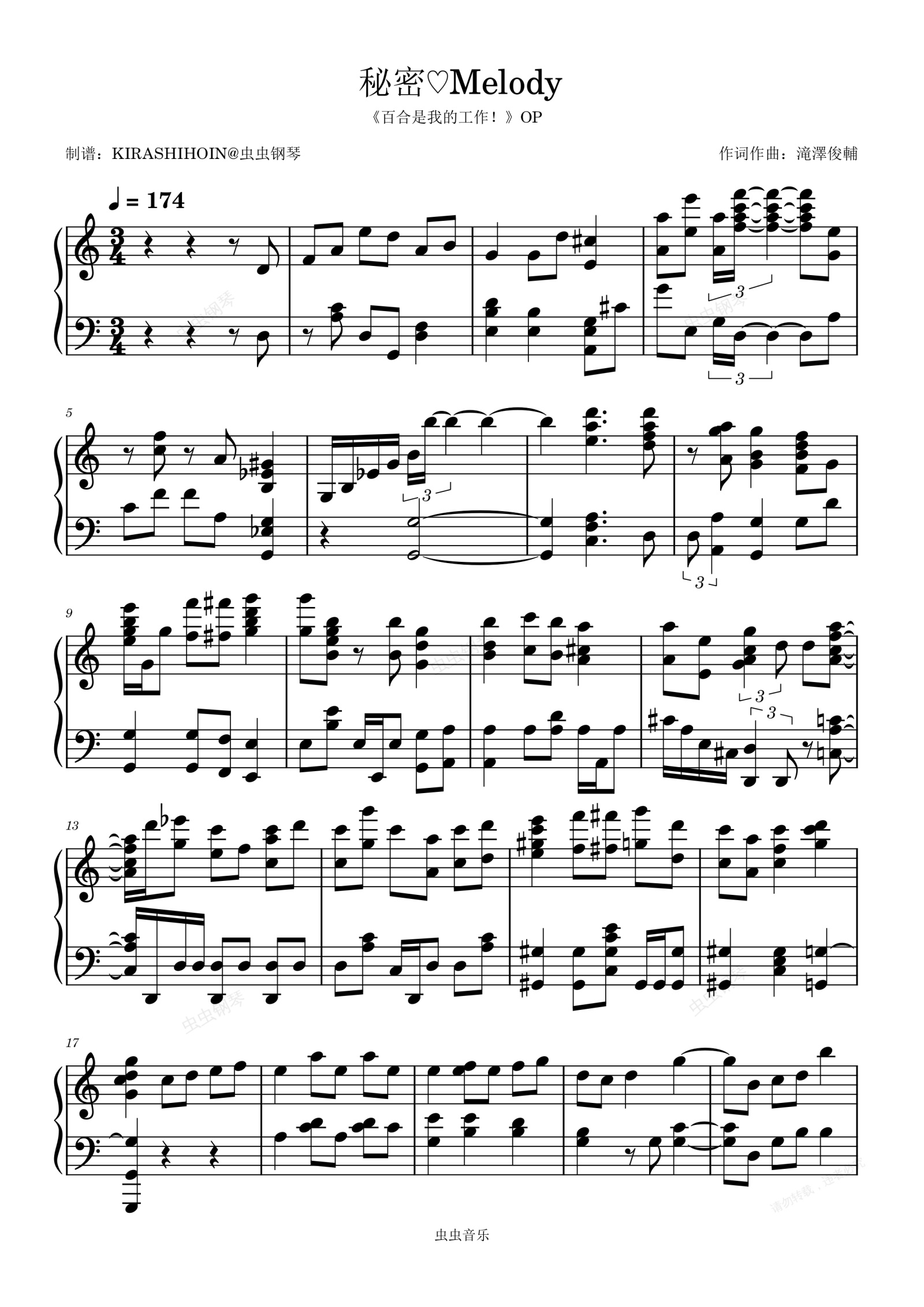 钢琴谱:秘密♡Melody(《百合是我的工作!》OP/片头曲)- 小仓唯