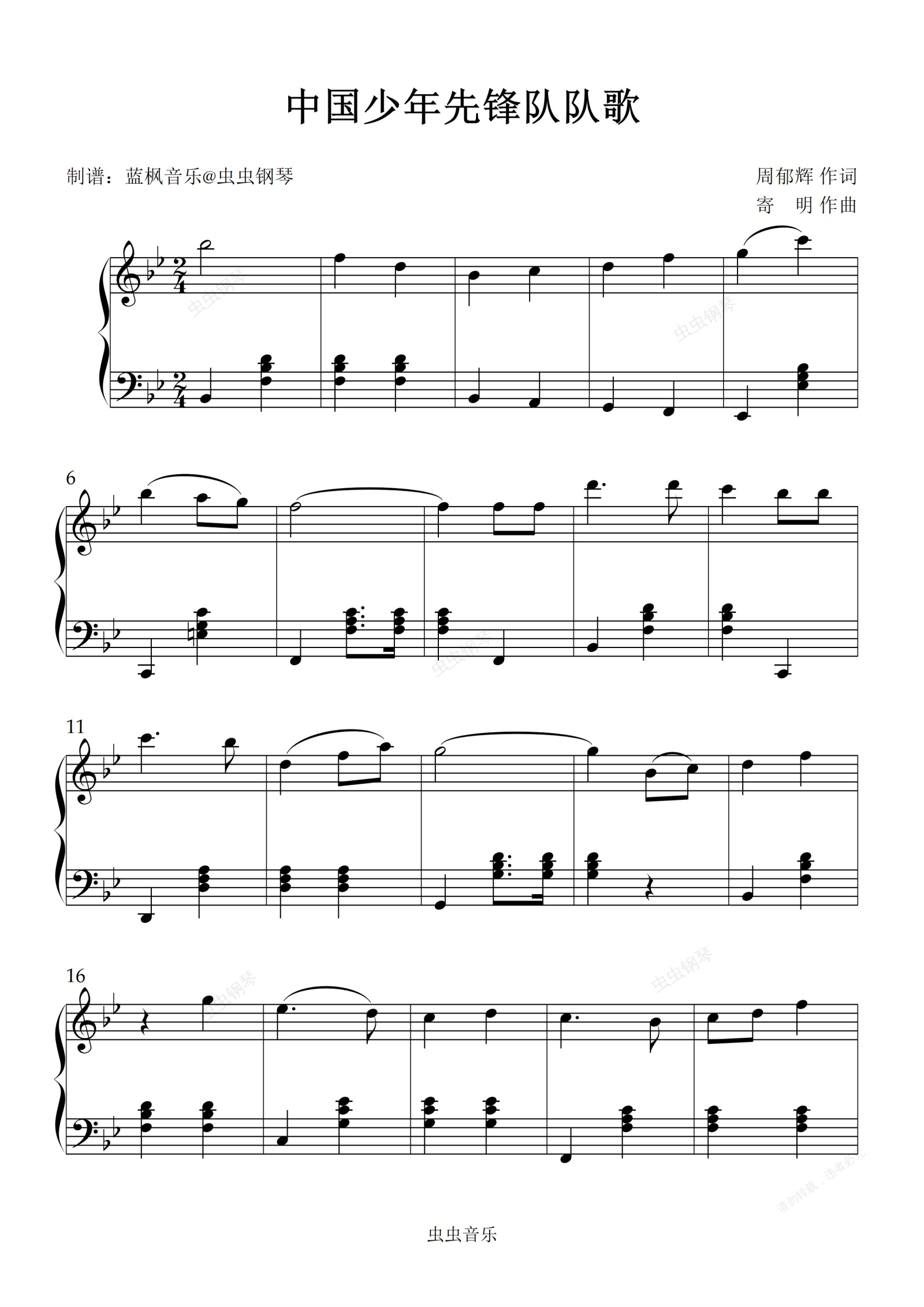 钢琴谱:中国少年先锋队队歌