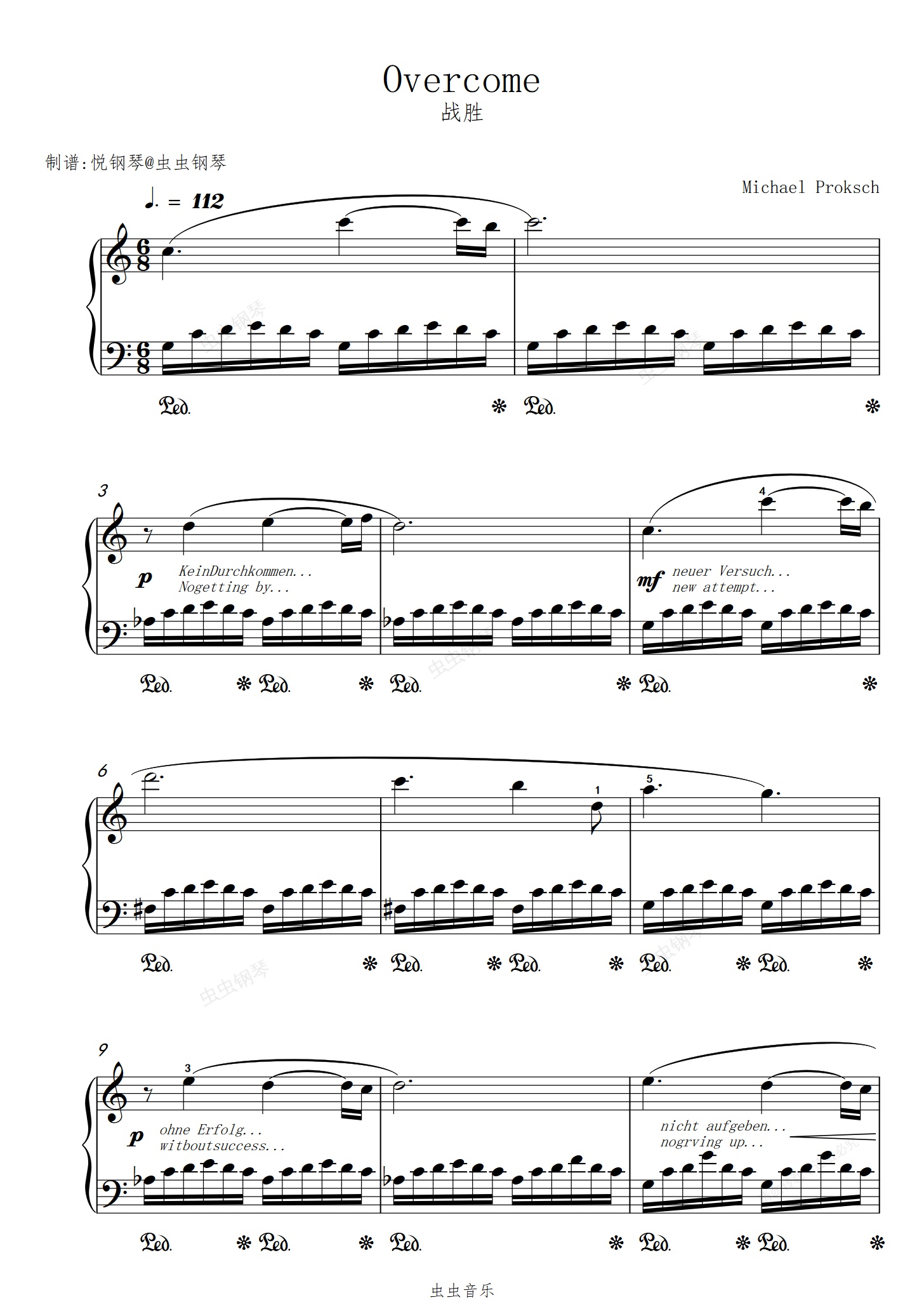 钢琴谱:战胜//Overcome【唯美-治愈】
