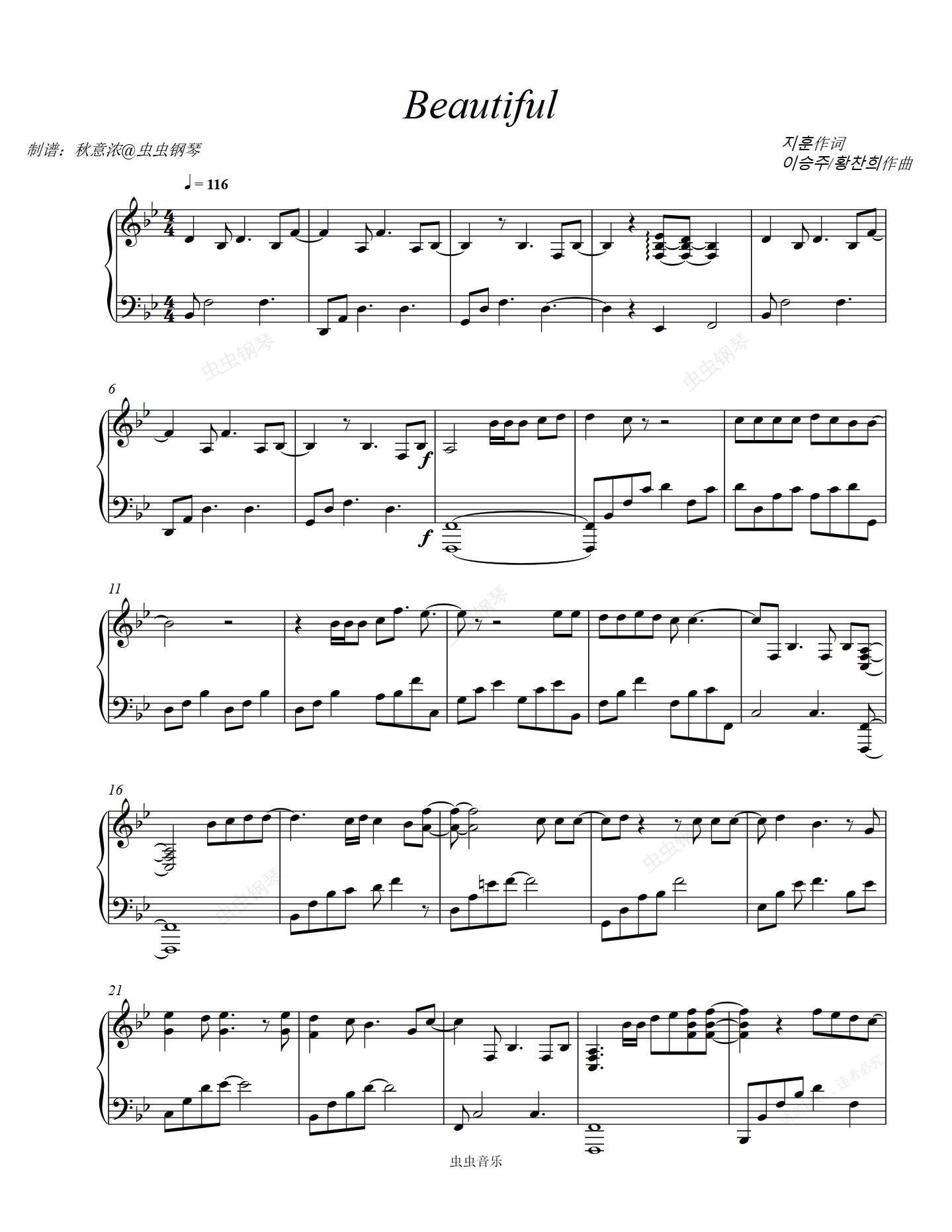 钢琴谱:Beautiful-孤单又灿烂的神-鬼怪OST