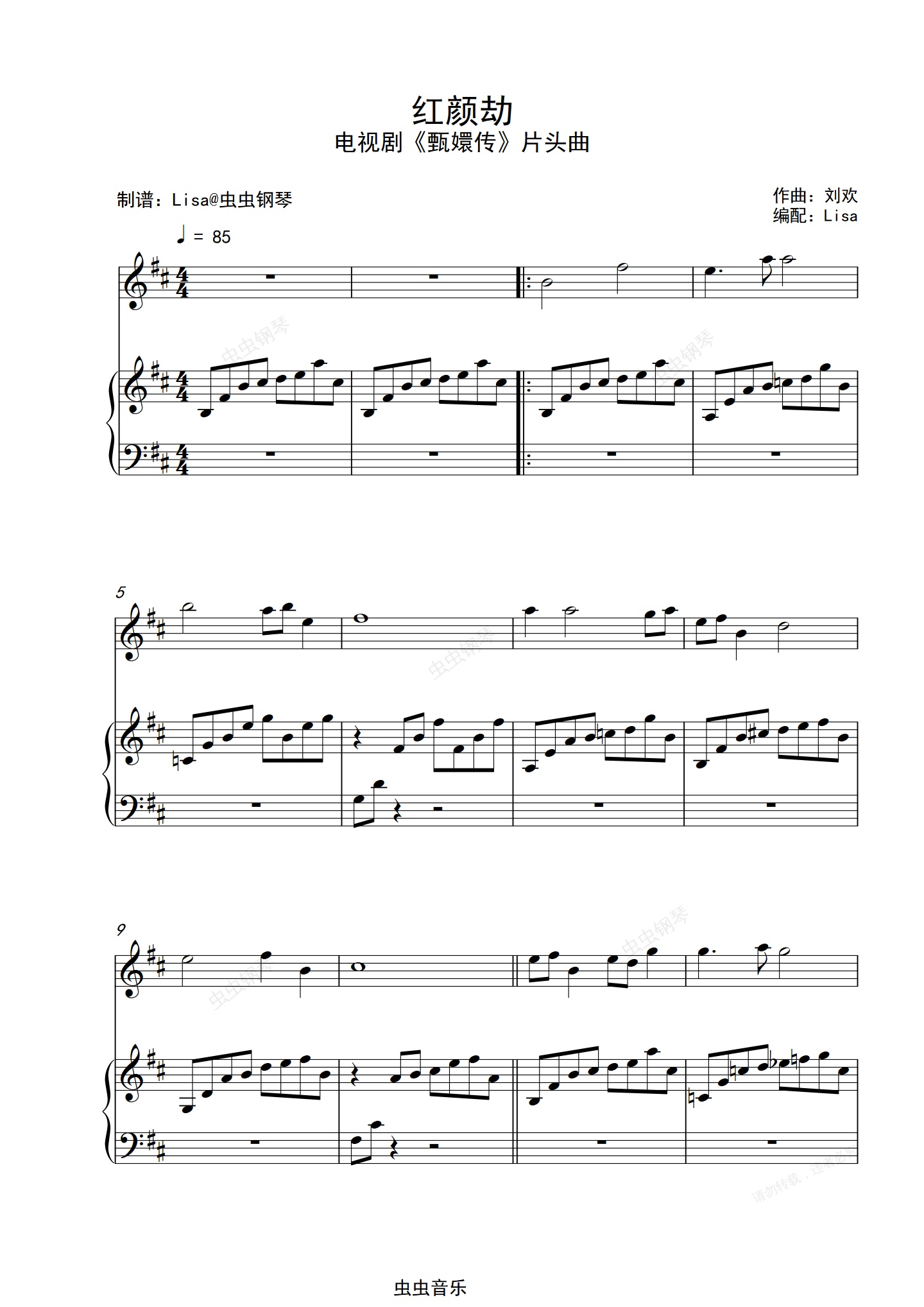 钢琴谱:红颜劫(《甄嬛传》片头曲)原版伴奏